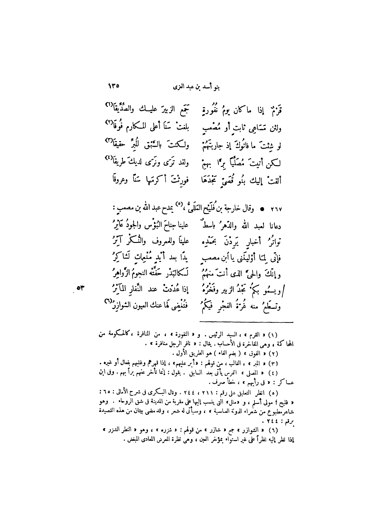 ويسمُو بكُمْ مَجْدُ الزبير وفَخْرُهُ فيكُمُ ... فتُغْضِى لَها عنك العيون الشوازِرُ