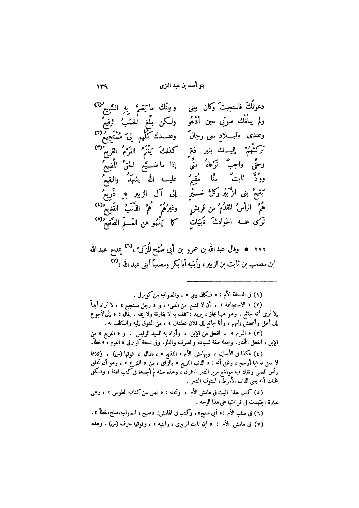 وقال عبد الله بن عمرو بن أبي صبح المزني، يمدح عبد الله ابن مصعب بن ثابت بن الزبير، وأبنيه أبا بكر ومصعباً ابني عبد الله: