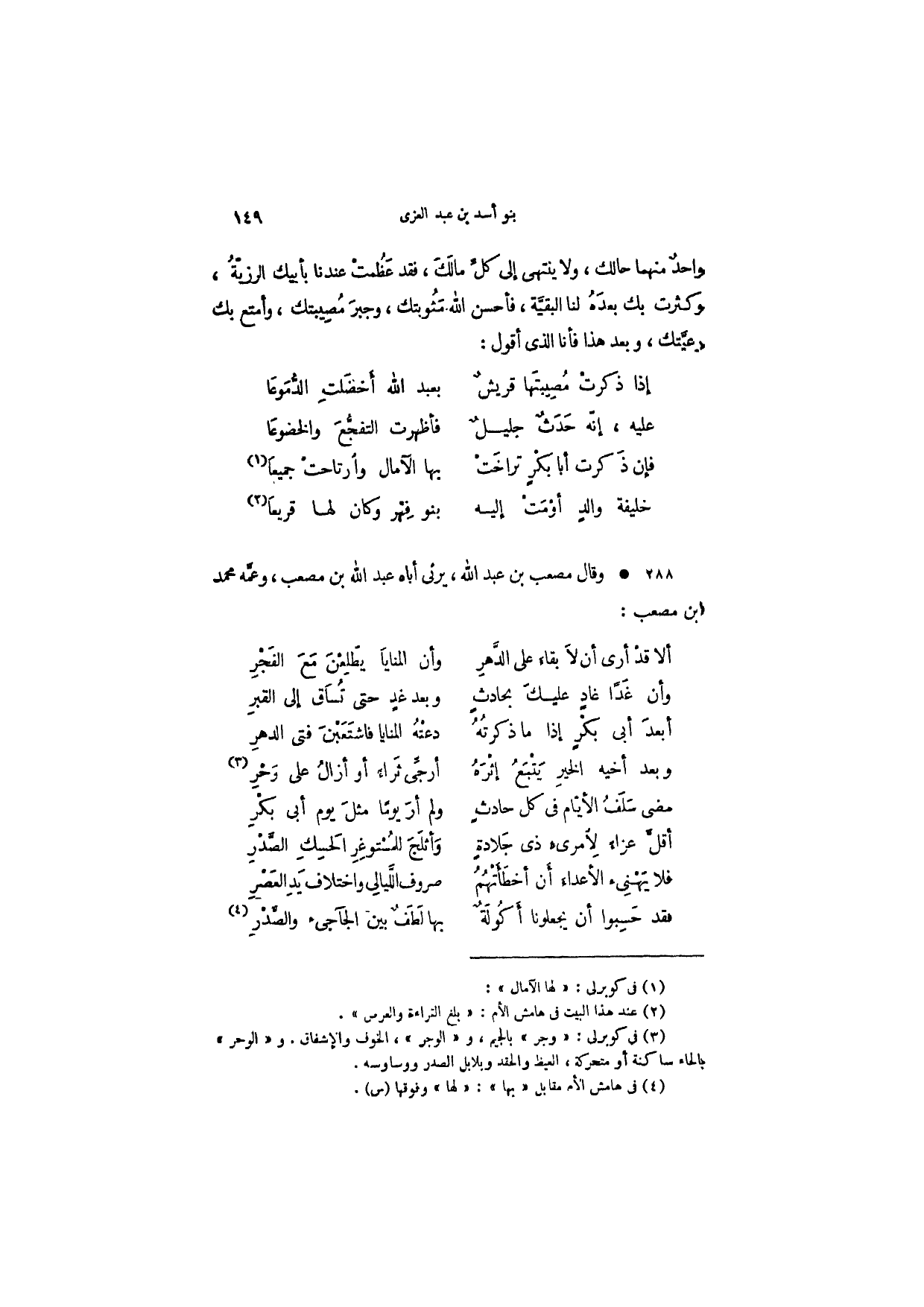 وقال مصعب بن عبد الله، يرثى أباه عبد الله بن مصعب، وعمه محمد ابن مصعب: