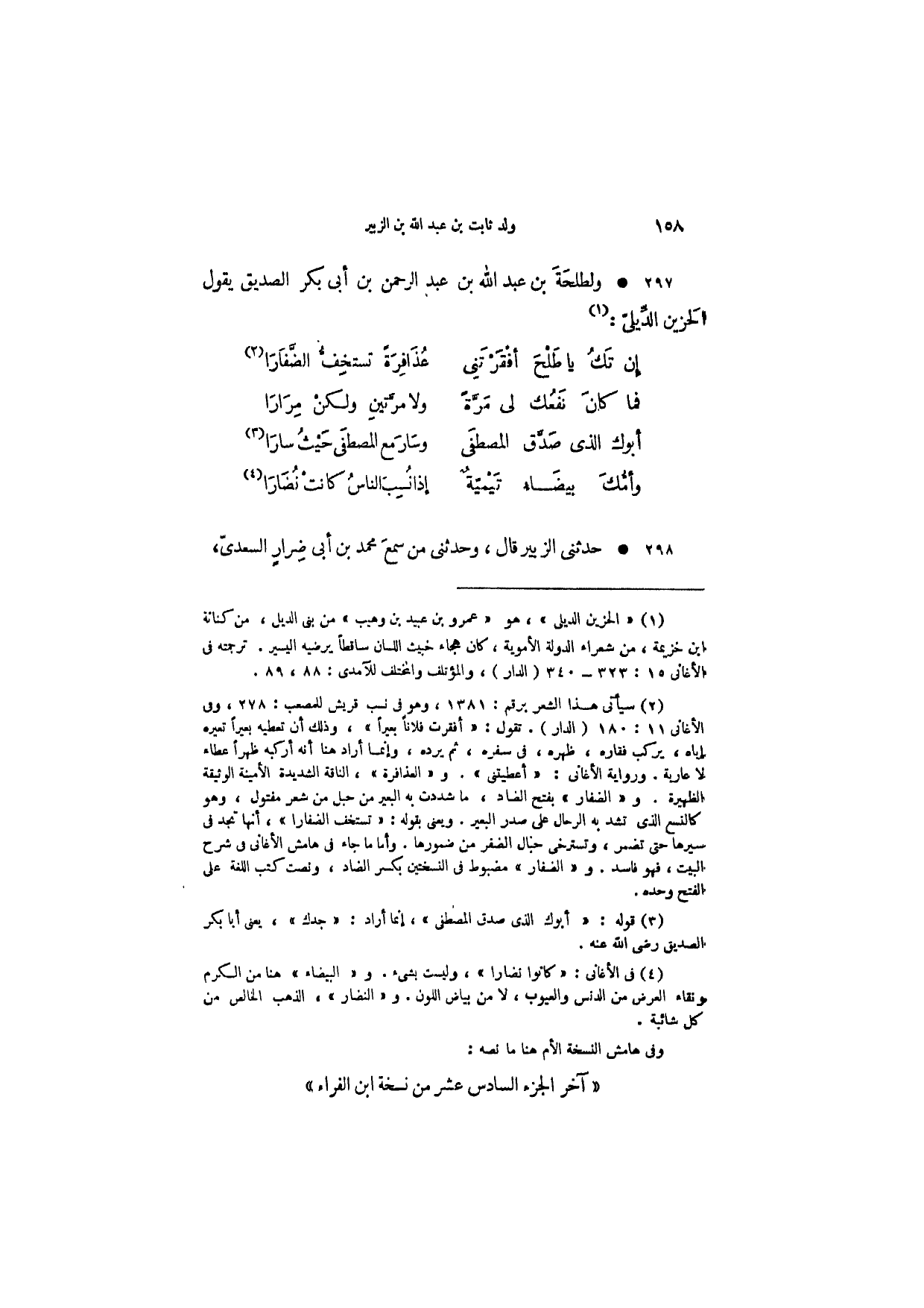 أبوك الذي صَدَّق المصطَفى ... وسَارَ مع المصطَفى حَيْثُ سارَا