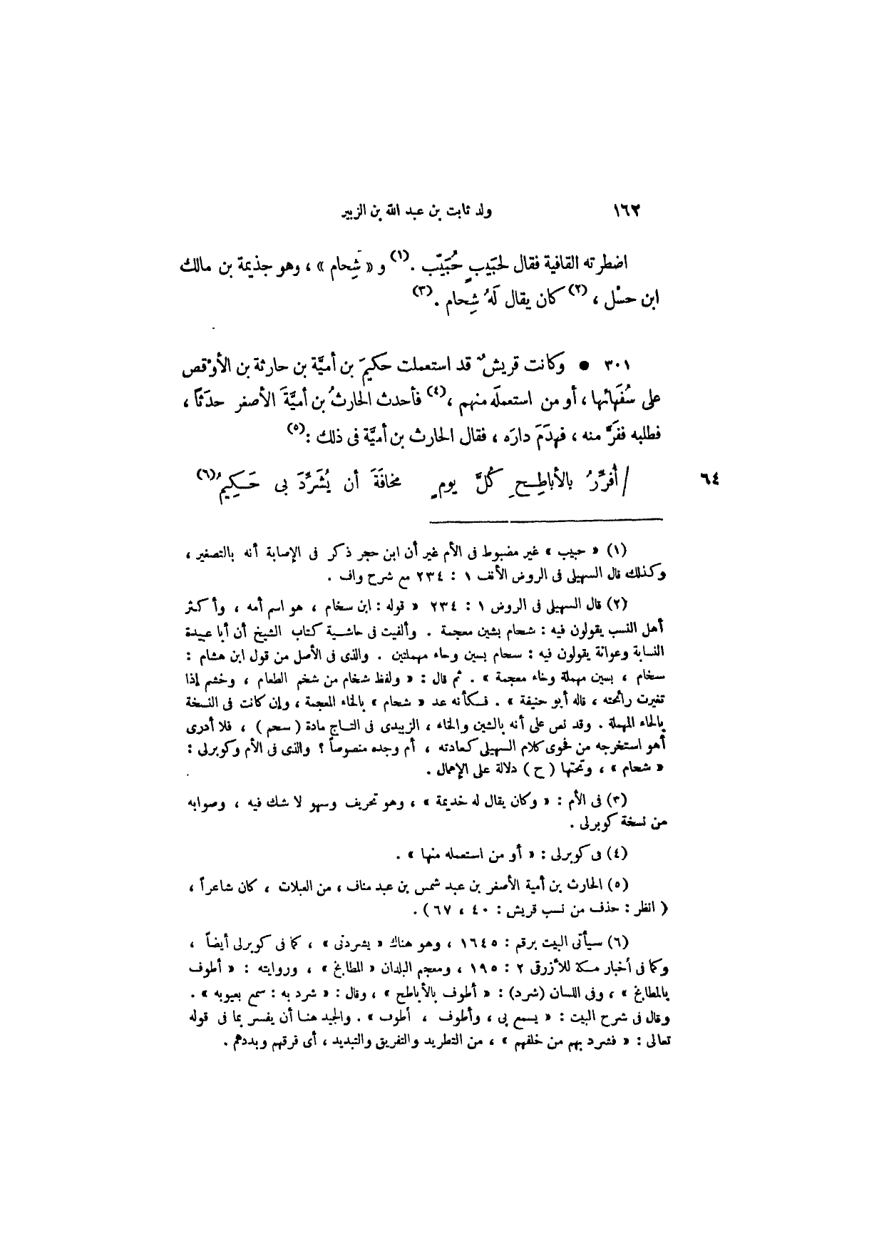 اضطرته القافية فقال لحبيب حبيب. و " شِحام "، وهو جذيمة بم مالك ابم حسل، كان يقال له شحام.