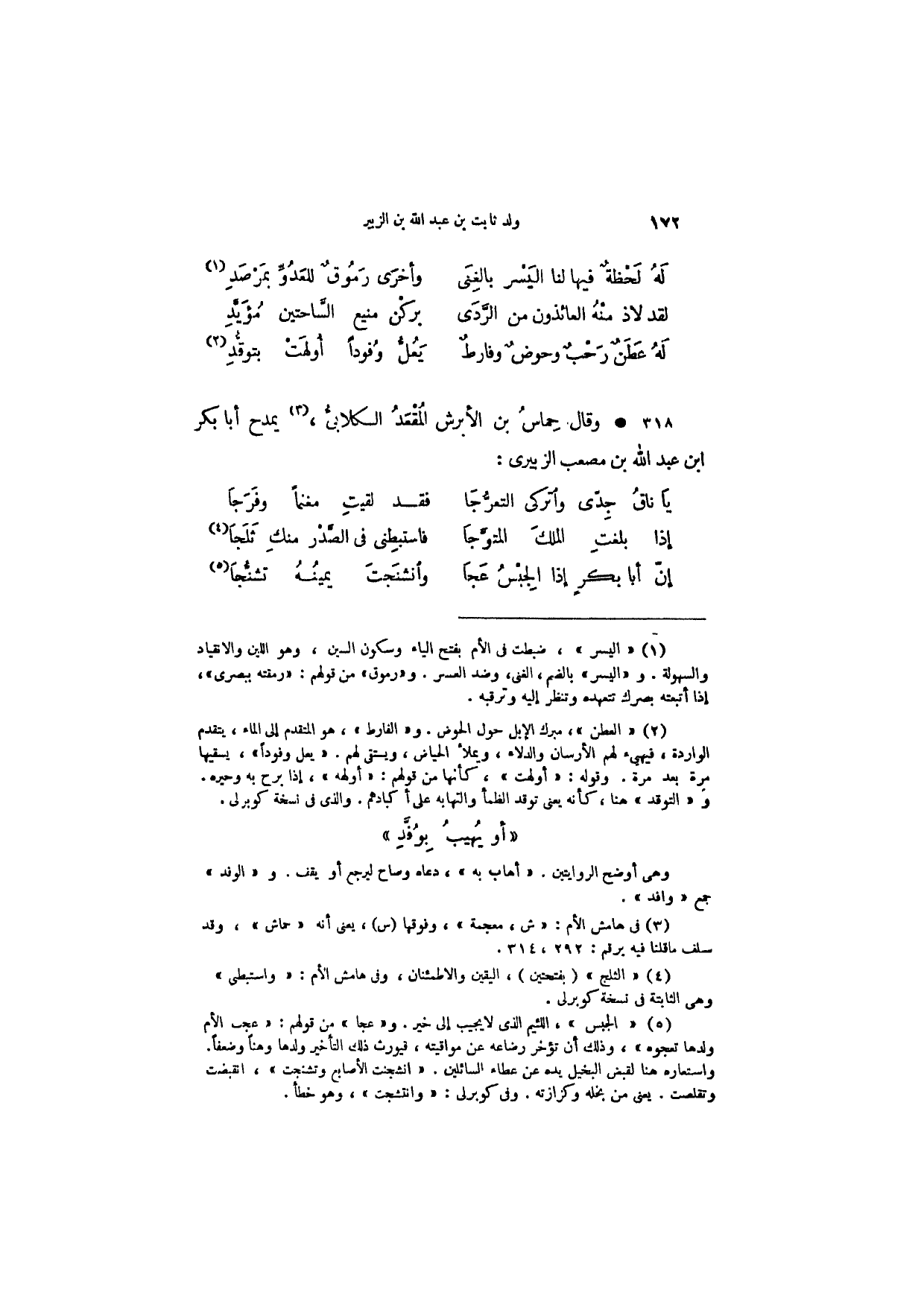 وقال حماس بن الأبرش المقعد الكلابي، يمدح أبا بكر ابن عبد الله بن مصعب الزبيري:
