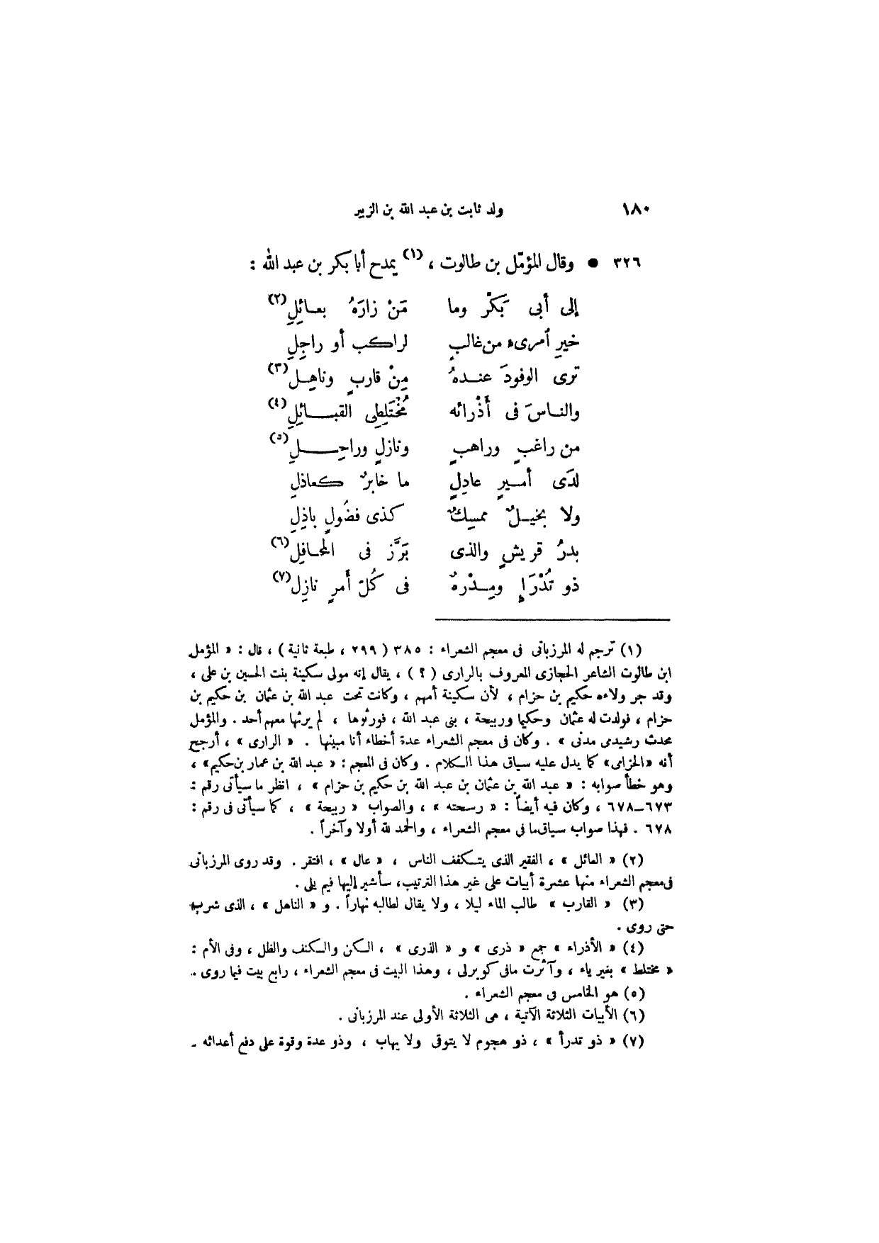وقال المؤمل بن طالوت، يمدح أبا بكر بن عبد الله: