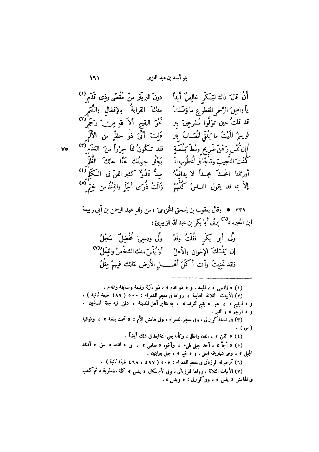 قد قلتُ حين توَلَّوا مُسْرعِينَ بِهِ ... نَحْوَ البقيِع ألاَ للهِ مِنْ رَجَمِ