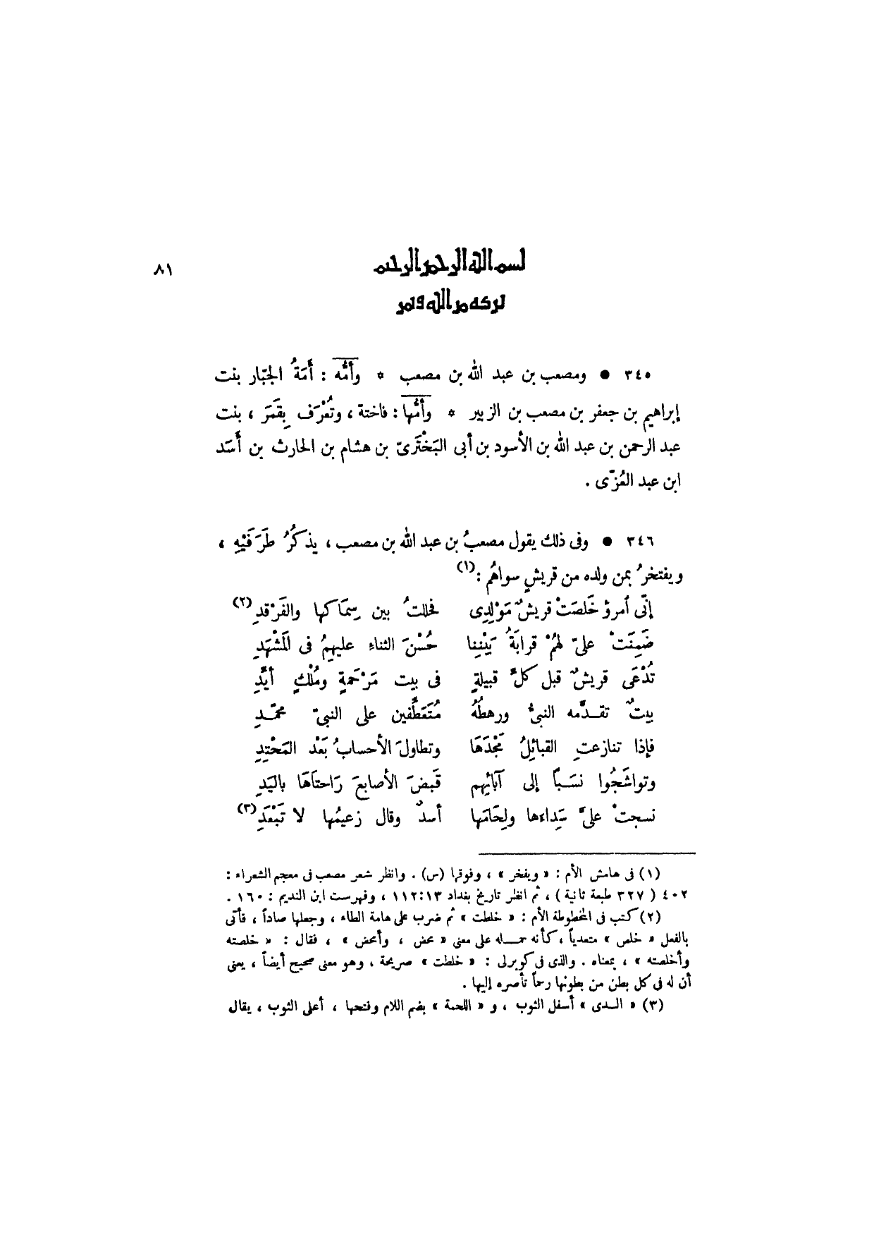 وفي ذلك يقول مصعب بن عبد الله بن مصعب، يذكر طرفيه، ويفتخر بمن ولده من قريش سواهم:
