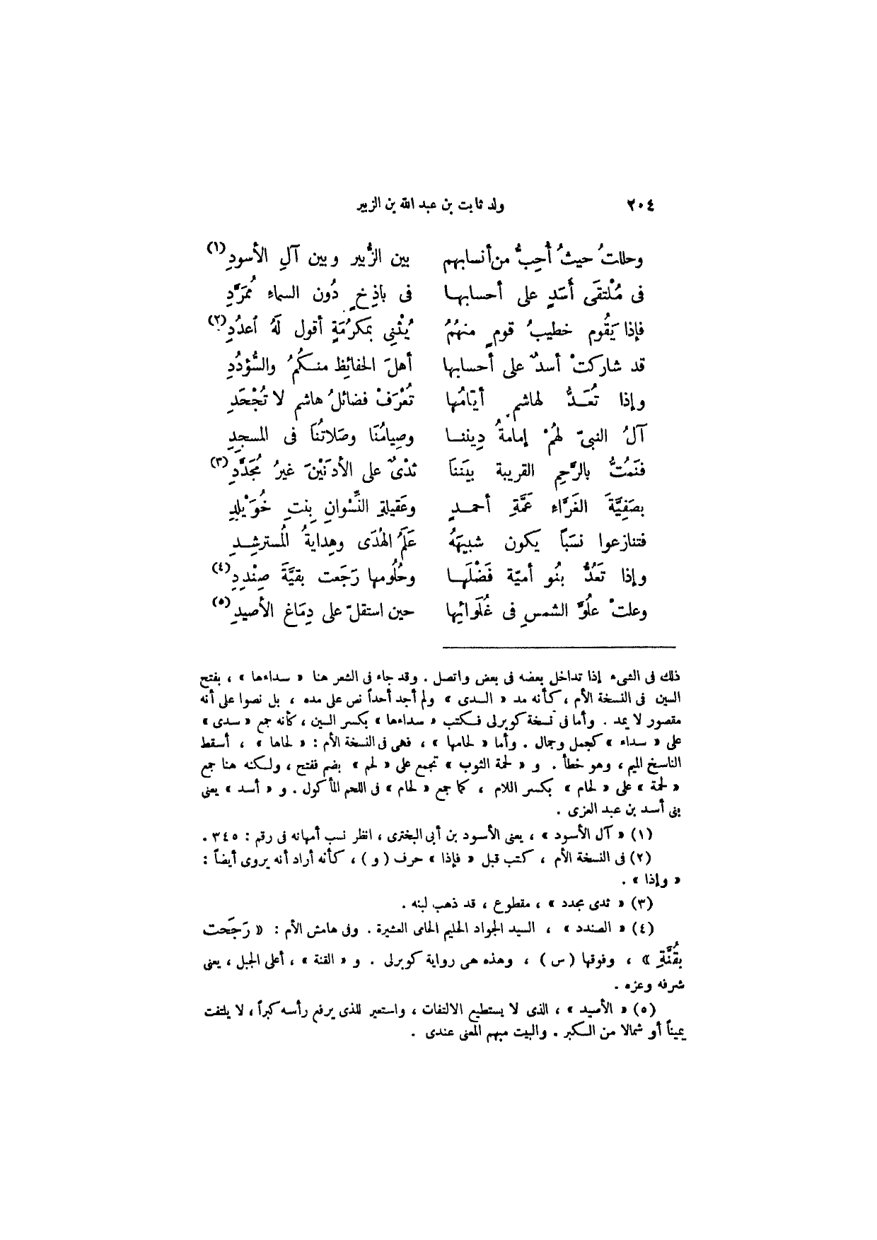 وحللتُ حيثُ أحبُّ من أنسابها ... بين الزُّبير وبين آلِ الأسودِ