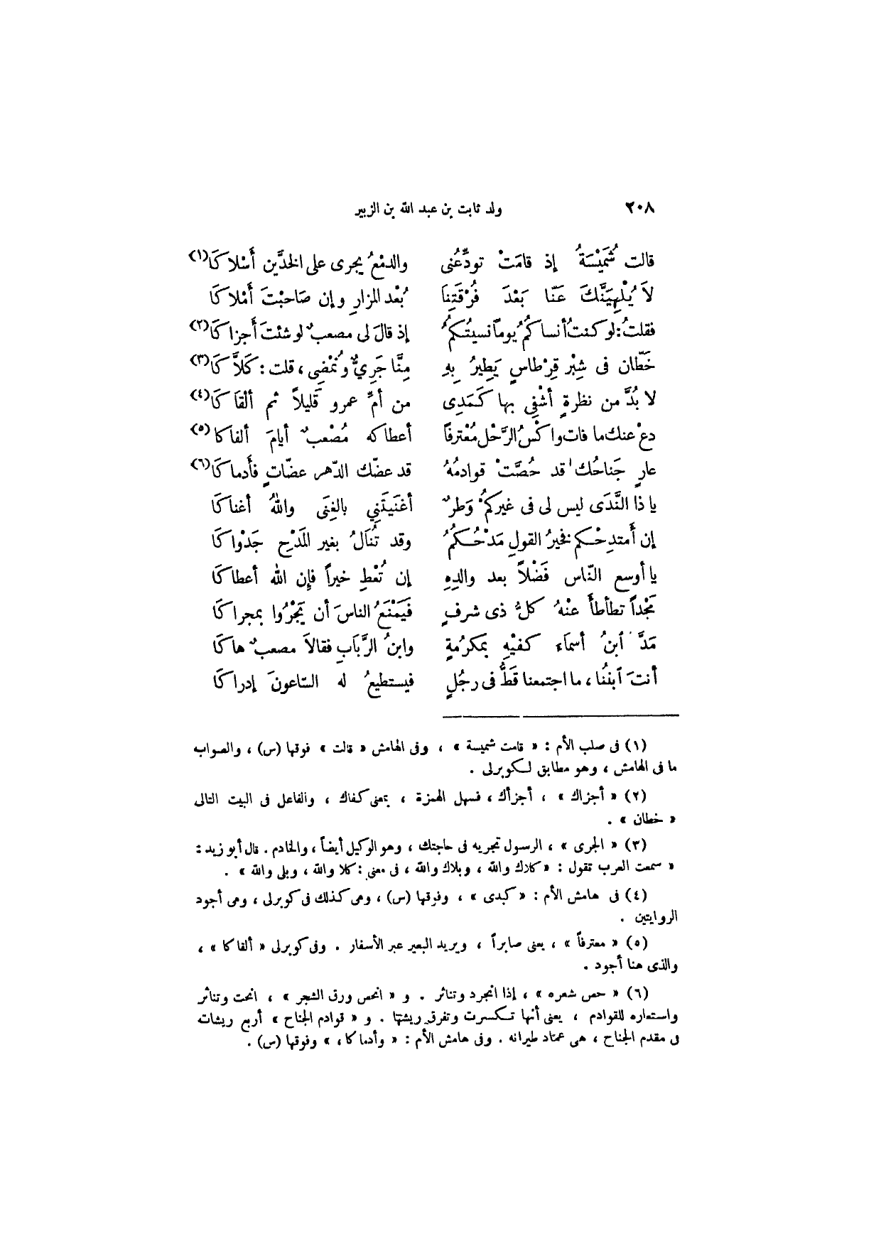 فقلتُ: لو كنتُ أنساكُمُ يوماً نسيتُكُمُ ... إذ قالَ لي مصعبٌ لو شئتَ أجزاكَا