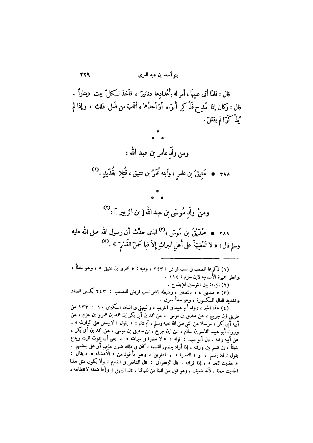 صديق بن موسى، الذي حدث أن رسول الله صلى الله عليه وسلم قال: " لا تعضية على أهل الميراث إلا فيما حمل القسم ".