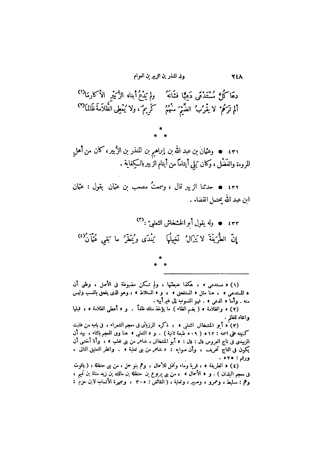 دعَا كُلُّ مُسْتَدْعًي دَعيًّا فشَانَهُ ... ولم يَدْعُ أبناءَ الزُّبَيْرِ الأكارمَا