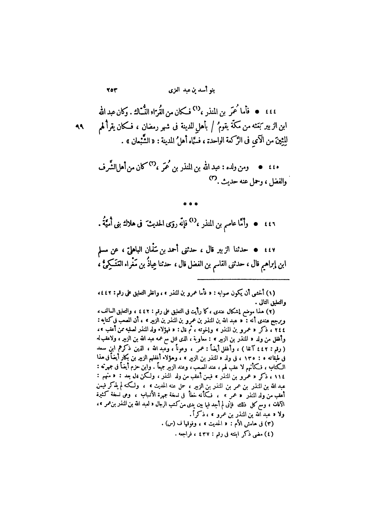ومن ولده: عبد الله بن المنذر بن عمر، كان من أهل الشرف والفضل وحمل عنه حديث.