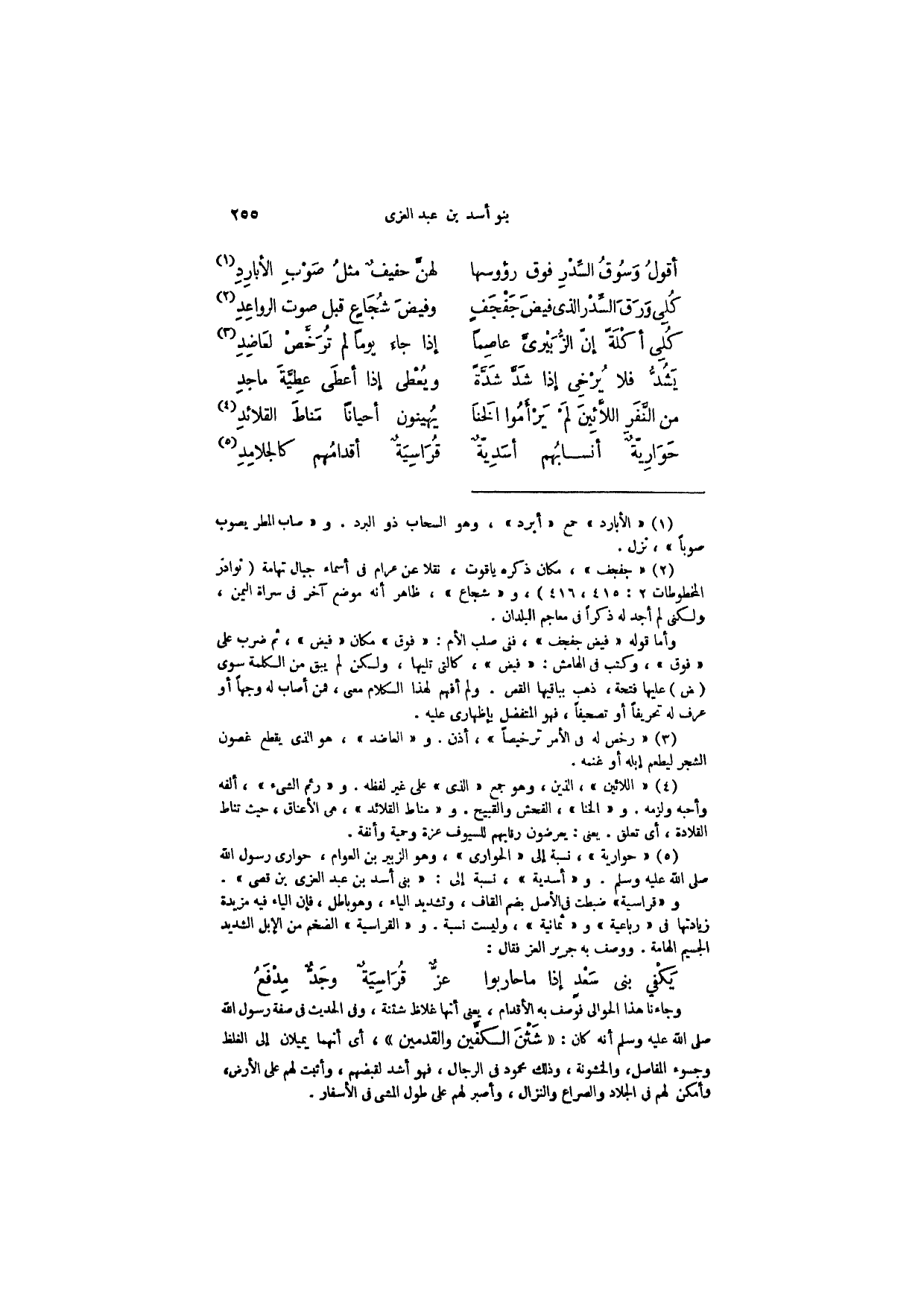 حَوَارِيةٌ أنسابُهم أسَدِيّةٌ ... قُرَاسِيَةٌ أقدامُهم كالجلامِدِ