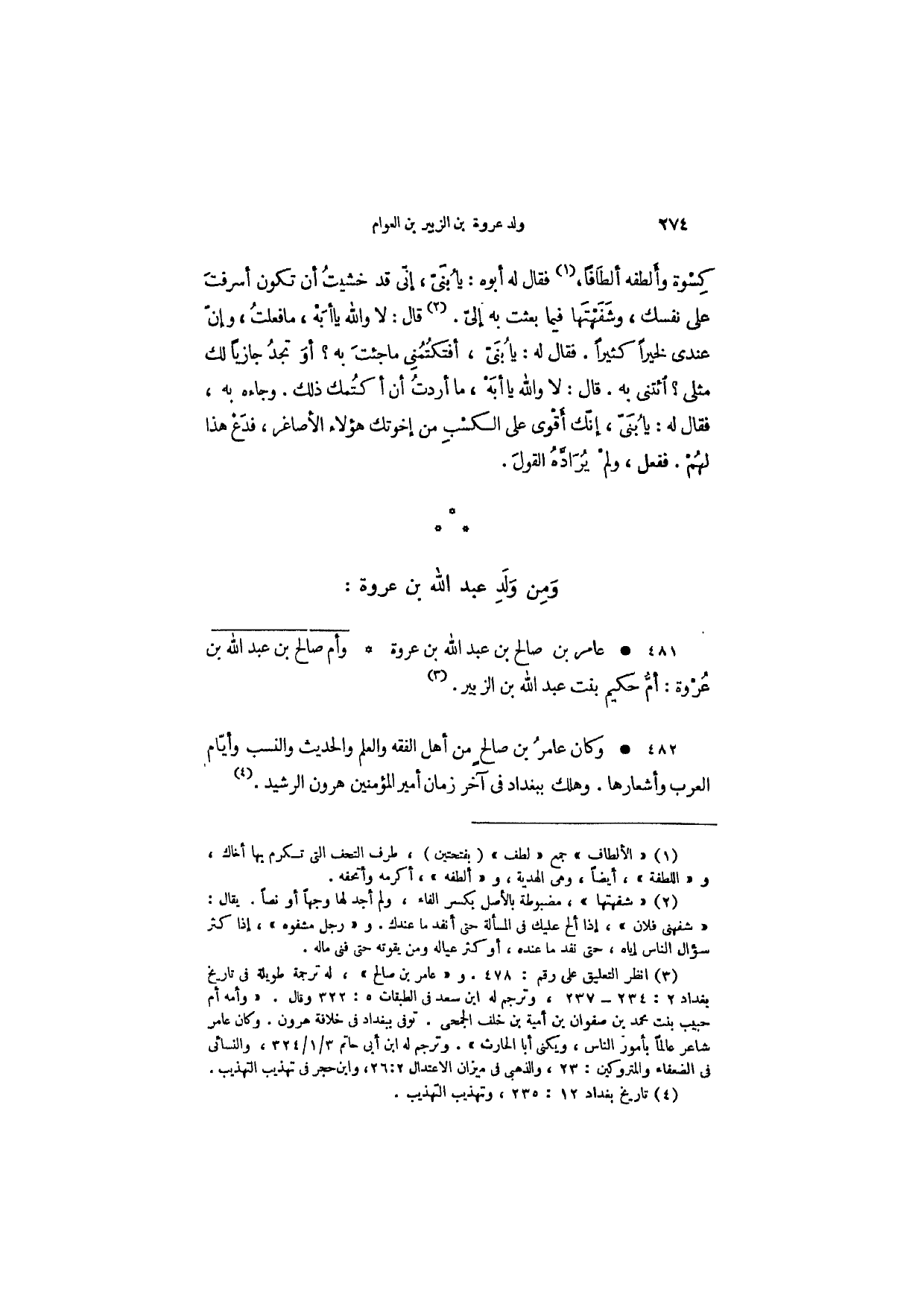 عامر بن صالح بن عبد الله بن عروة وأم صالح بن عبد الله بن عروة: أم حكيم بنت عبد الله بن الزبير.
