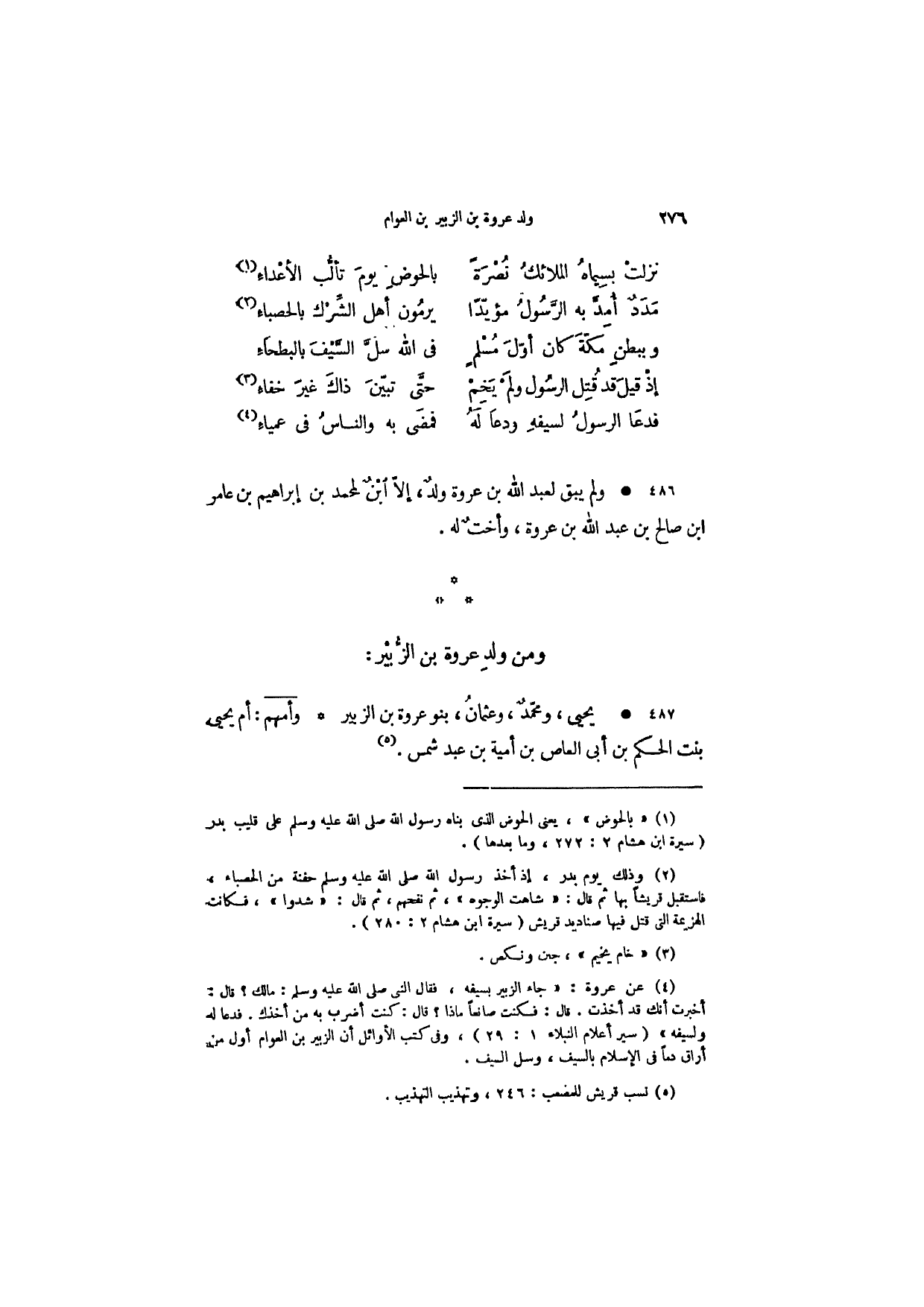 يحيى، ومحمد، وعثمان، بنو عروة بن الزبير وأمهم: أم يحيى بنت الحكم بن أبي العاص بن أمية بن عبد شمس.