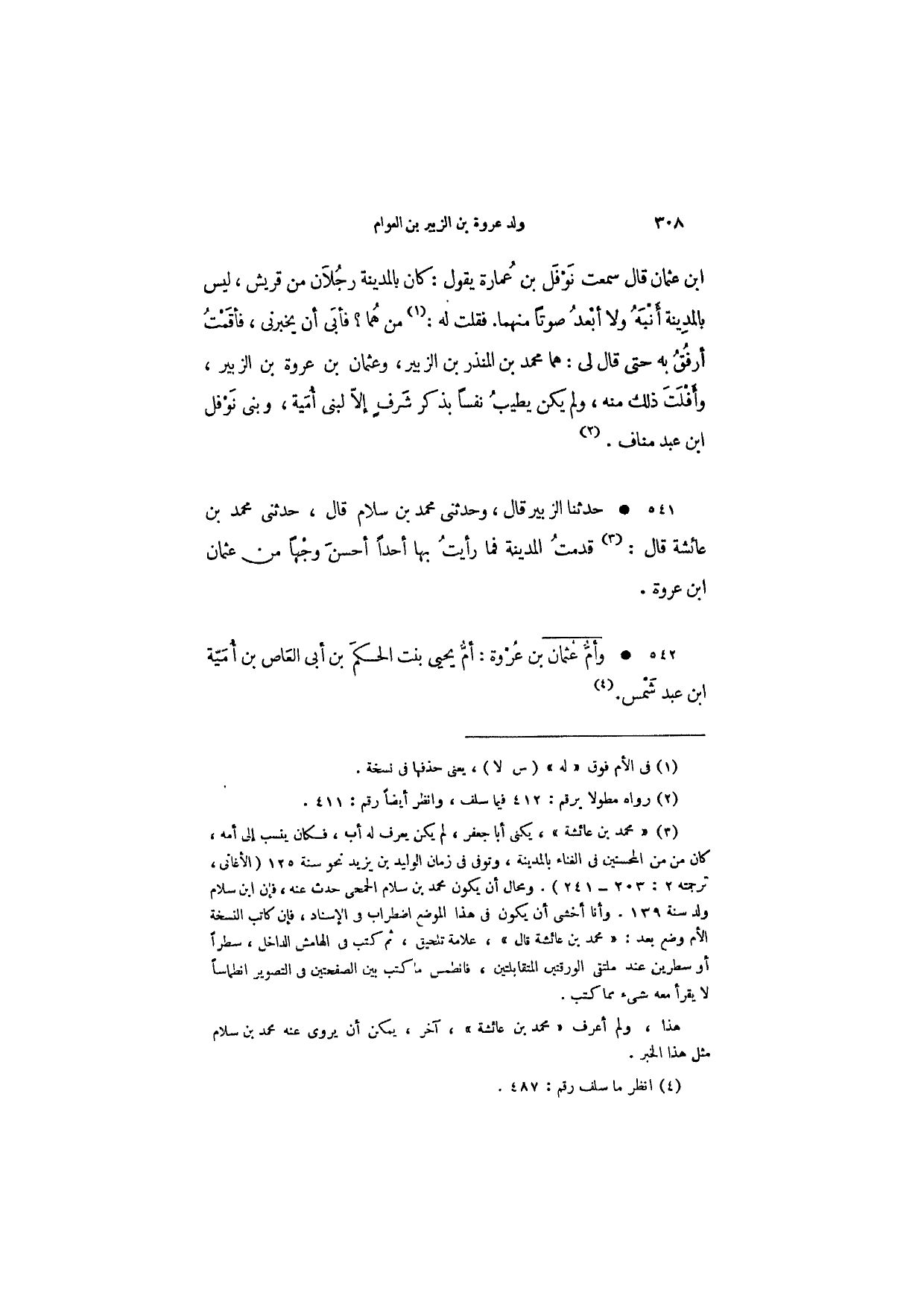 حدثنا الزبير قال، وحدثني محمد بن السلام قال، حدثني محمد بن عائشة قال: قدمت المدينة فما رأيت بها أحداً أحسن وجهاً من عثمان ابن عروة.