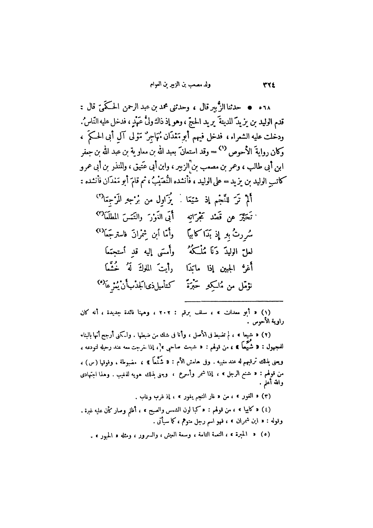 ألمْ تَرَ للنَّجْم إذ شيّعَا ... يُزَاوِل من بُرْجِه المَرْجِعَا