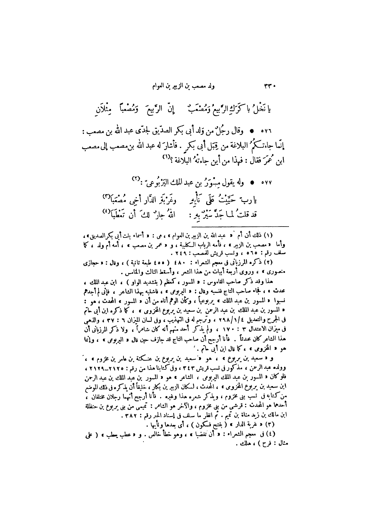 يا نَخْلُ باكَرَكِ الرَّبيعُ ومُصْعَبٌ ... إنّ الرَّبيعَ ومُصْعباً مِثْلاَنِ