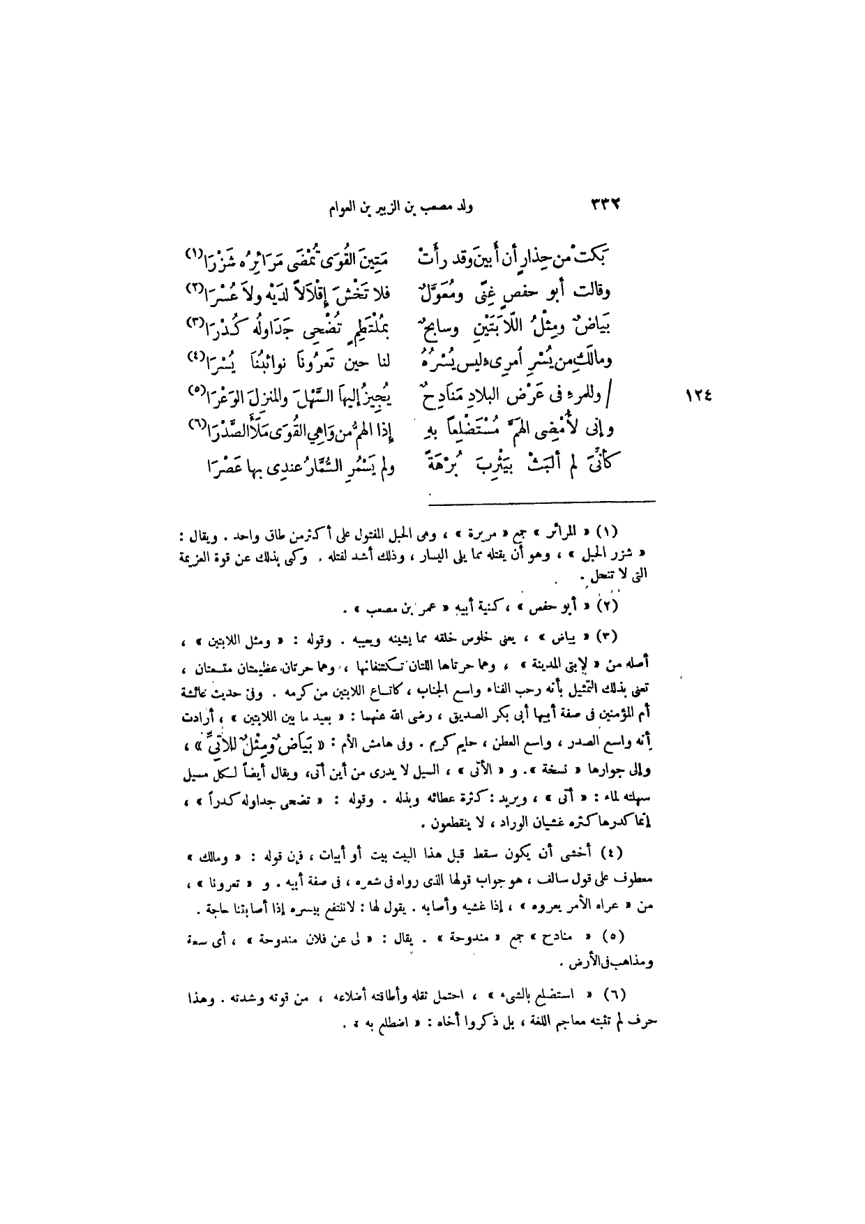بَكتْ من حِذارٍ أن أبينَ وقد رأتْ ... مَتِينَ القُوَىُ تُمْضَي مَرَائِرُه شَزْرَا