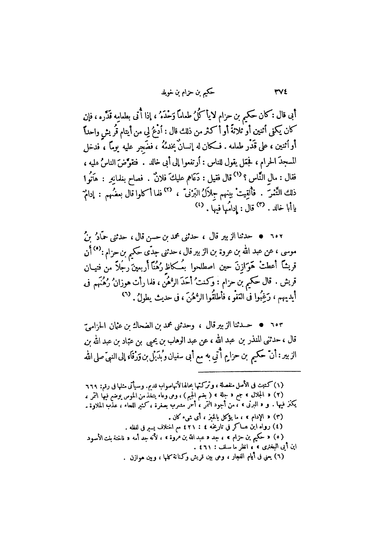 حدثنا الزبير قال، حدثني محمد بن حسن قال، حدثني حماد بن موسى، عن عبد الله بن عروة بن الزبير قال، حدثني جدي حكيم بن حزام: أن قريشاً أعطت هوازن حين اصطلحوا بعكاظ رهناً أربعين رجلاً من فتيان قريش. قال حكيم بن حزام: وكنت أحد الرهن، فلما رأت هوازن رهنهم في أيديهم، رغبوا في العفو، فأطلقوا الرهن، في حديث يطول.
