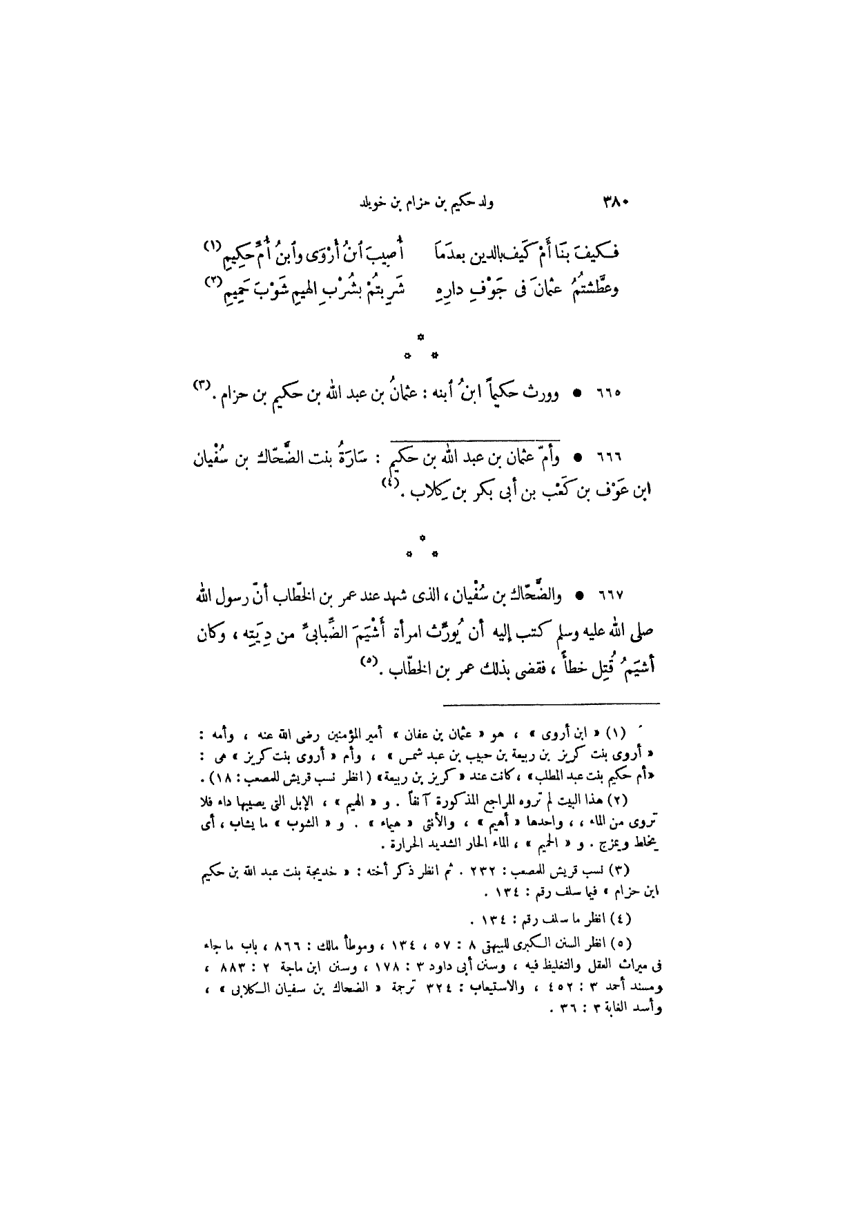 وورث حكيماً ابن ابنه: عثمان بن عبد الله بن حكيم بن حزام.