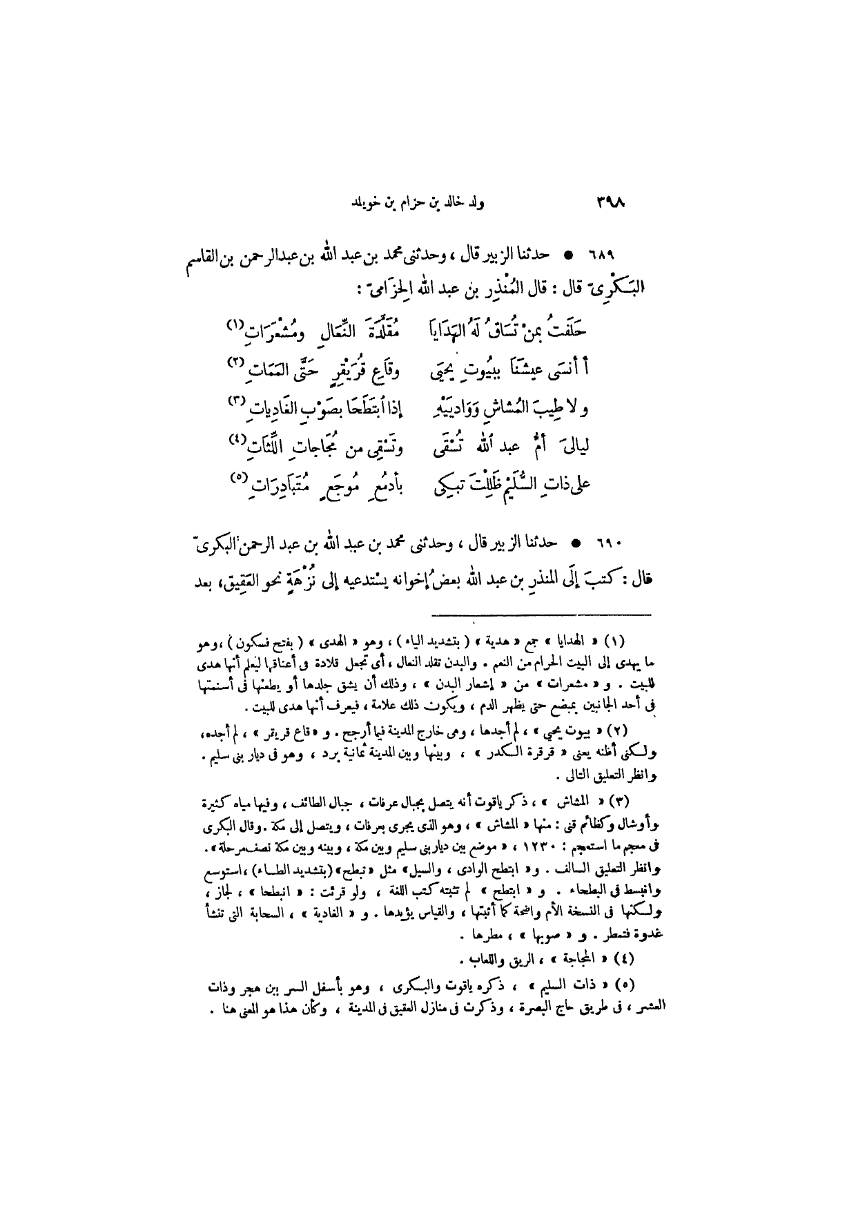 حدثنا الزبير قال، وحدثني محمد بن بعد الله بن عبد الرحمن بن القاسم البكري قال: قال المنذر بن عبد الله الحزامي: