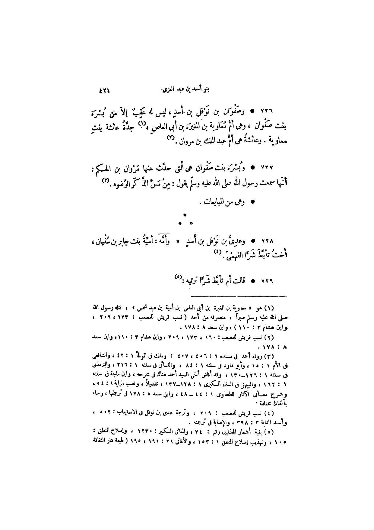 وبشرة بنت صفوان هي التي حدث عنها مروان بن الحكم: أنها سمعت رسول الله صلى الله عليه وسلم يقول: من مَسِّ الذَّكَر الوضوء.