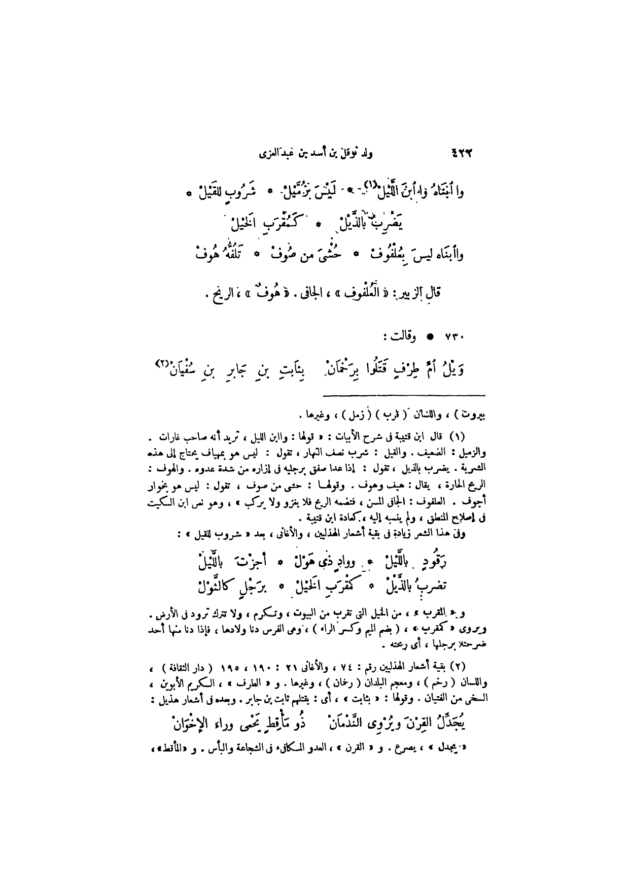 وَيْلُ أمِّ طِرْفٍ قَتَلُوا بِرَخْمَانْ ... بِثَابتِ بنِ جَابرِ بنِ سُفْيَانْ