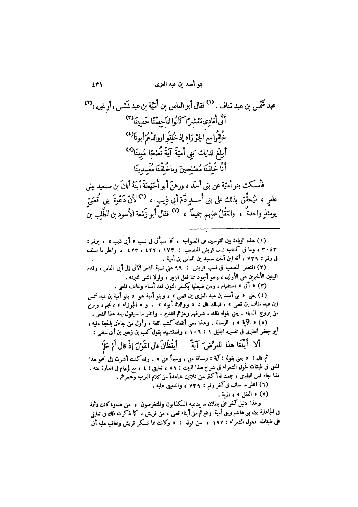 وكان ممن رحل فيه، أبو أمية بن المغيرة المخزومي، قال. فلما قدم أبو أحيحة مكة، جعل يحرض على بني أسد، ويغري بهم بني عامر وبني أمية في دم أبي ذيب. وكانت أم أبي ذيب: أم حبيب ابنة العاص بن أمية بن عبد شمس بن عبد مناف. فقال أبو العاص بن أمية بن