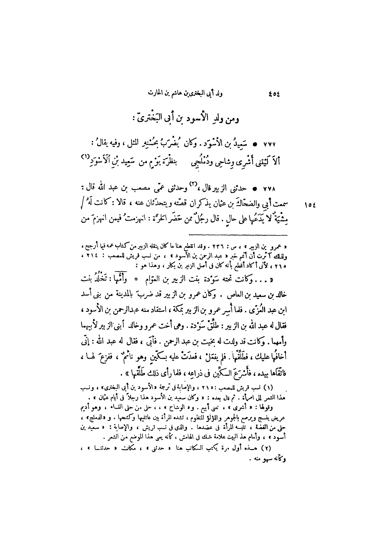 ألاَ لَيْتني أشْرِى وشاحِى ودُمْلُجِى ... بنظْرَة يَوْمٍ من سَعِيد بْنِ الأسْوَدِ