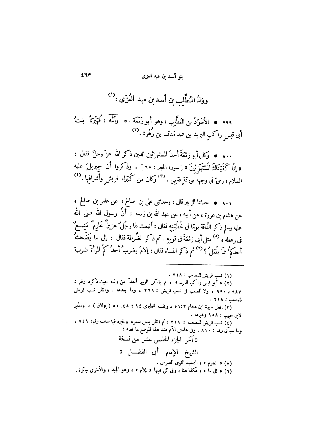 الأسود بن المطلب، وهو أبو زمعة وأمه: فهيرة بنت أبي قيس راكب البريد بن عبد مناف بن زهرة.