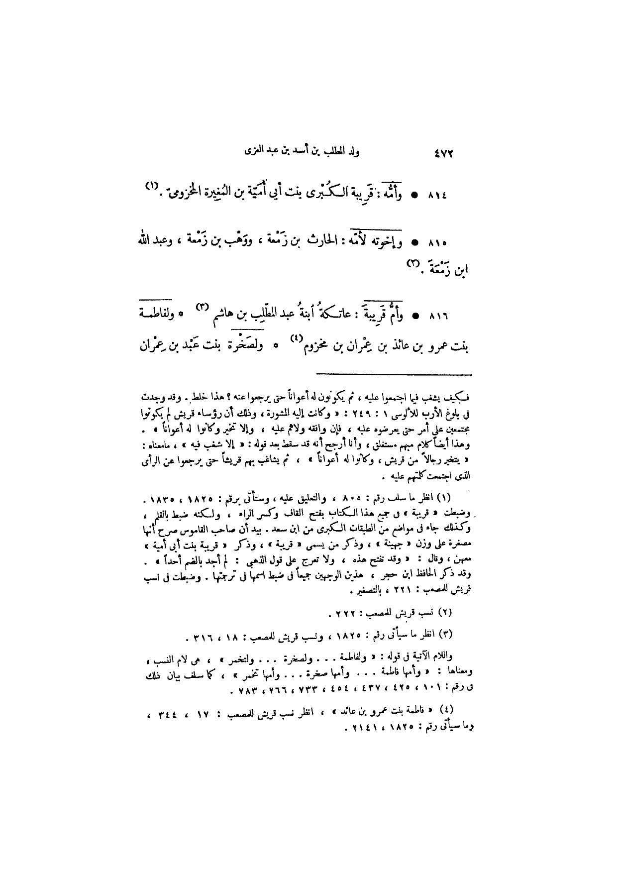 وأم قريبة: عاتكة ابنة عبد المطلب بن هاشم ولفاطمة بنت عمرو بن عائذ بن عمران بن مخزوم ولصخرة بنت عبد بن عمران