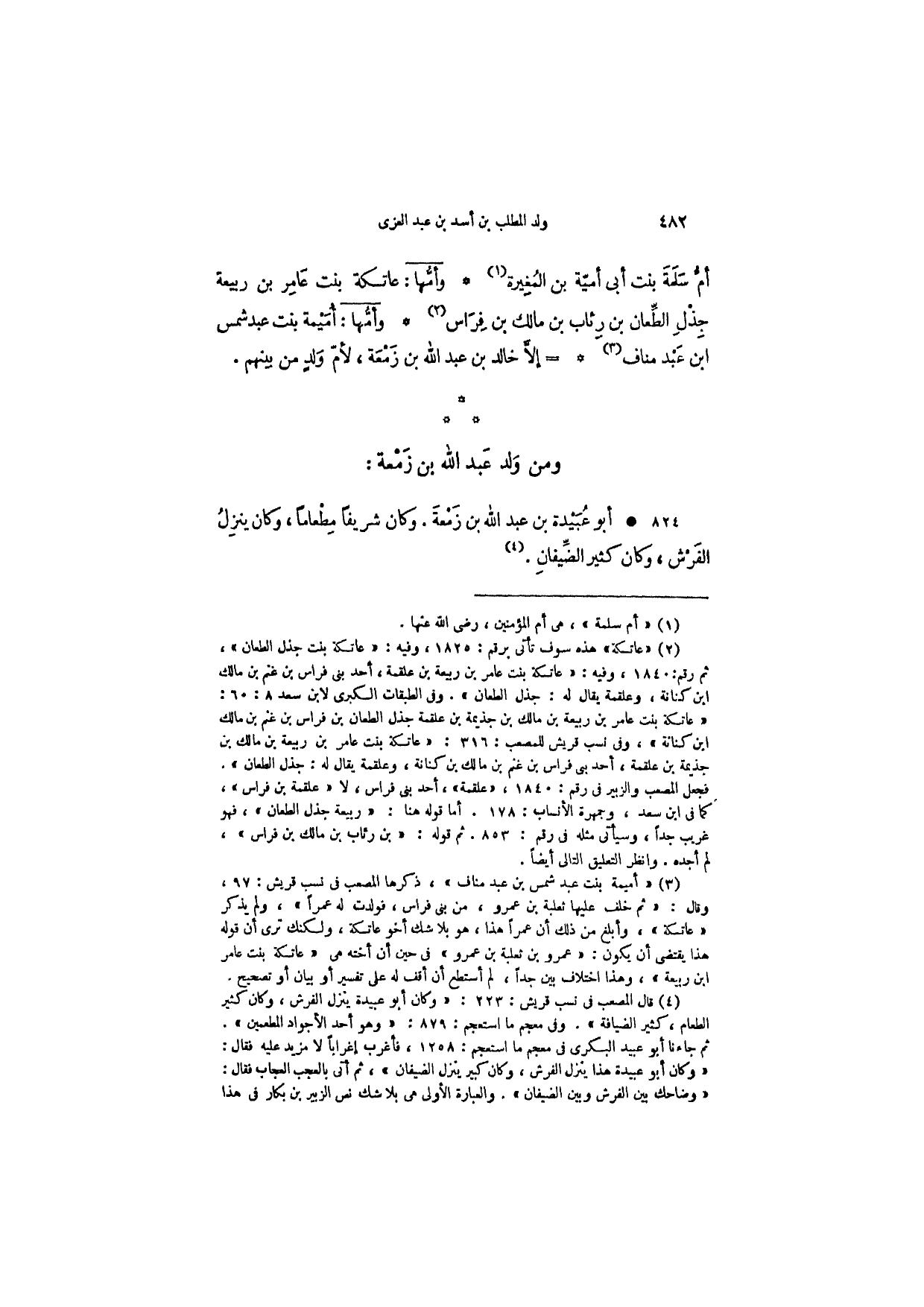 أبو عبيدة بن عبد الله بن زمعة. وكان شريفاً مطعاماً، وكان ينزل الفرش، وكان كثير الضيفان.