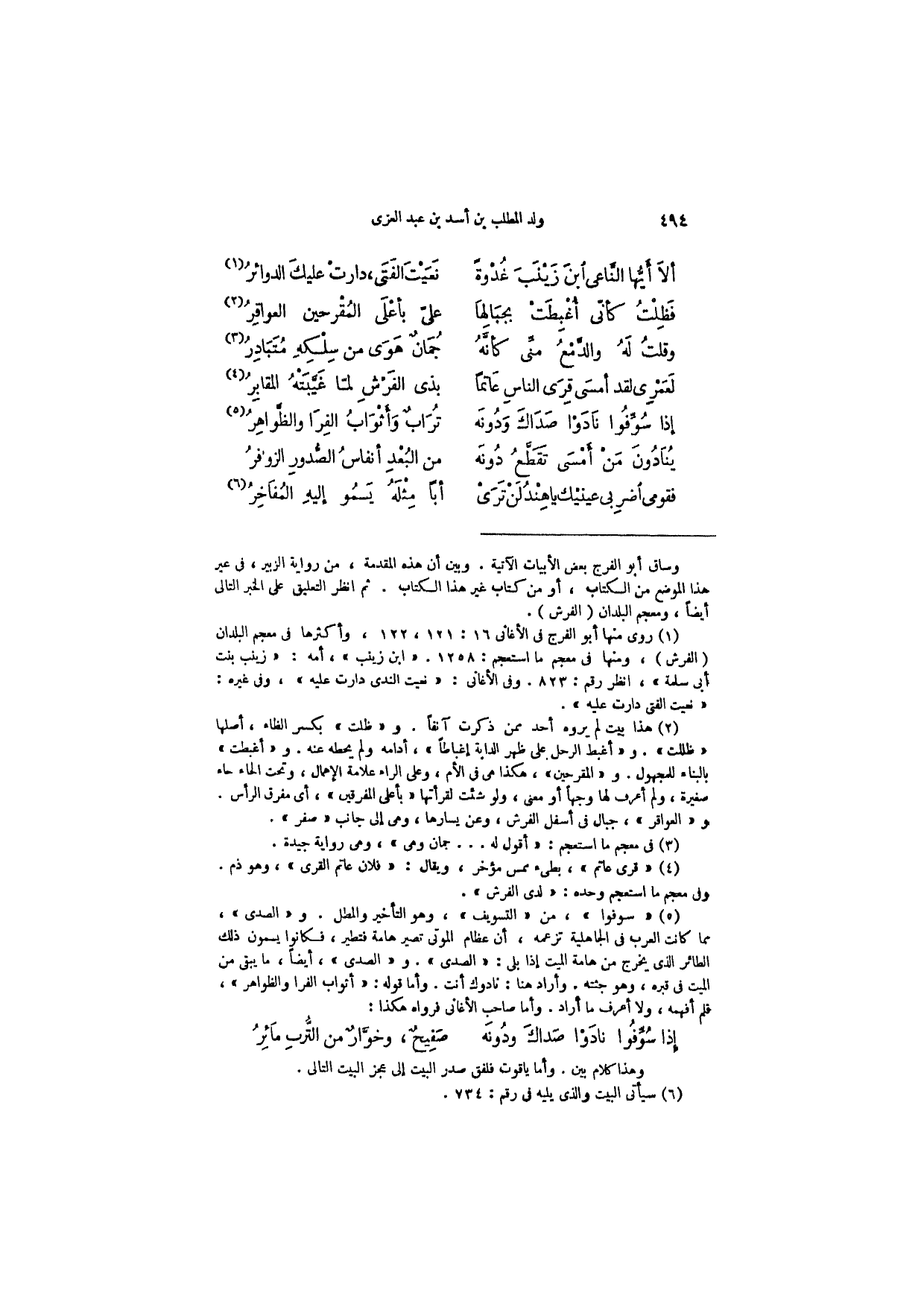 ألاَ أيُّها النَّاعي ابنَ زَيْنَبَ غُدْوةً ... نَعَيْتَ الفَتَى، دارتْ عليكَ الدوائرُ