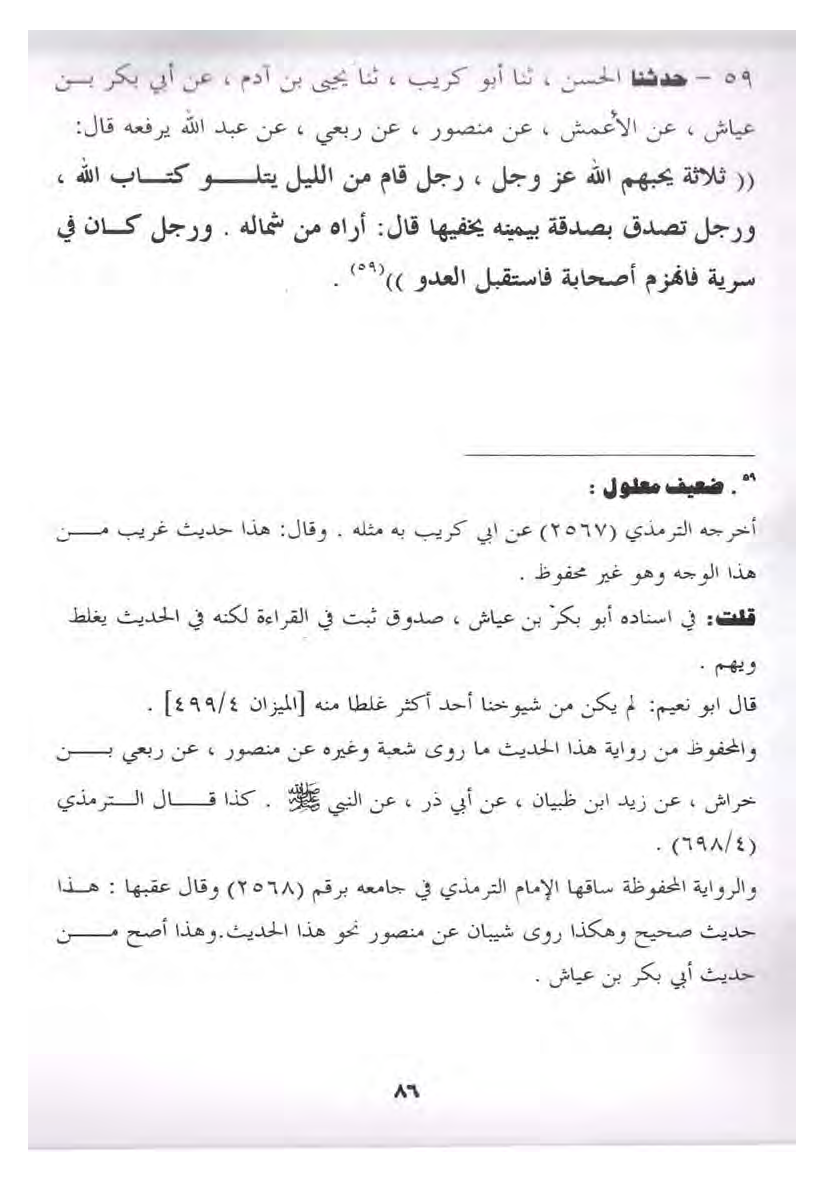 59- حَدَّثَنَا الْحَسَنُ، ثَنَا أَبُو كُرَيْبٍ، ثَنَا يَحْيَى بْنُ آدَمَ، عَنْ أَبِي بَكْرِ بْنِ عَيَّاشٍ، عَنِ الأَعْمَشِ، عَنْ مَنْصُورٍ، عَنْ رِبْعِيٍّ، عَنْ عَبْدِ اللَّهِ يَرْفَعُهُ قَالَ: