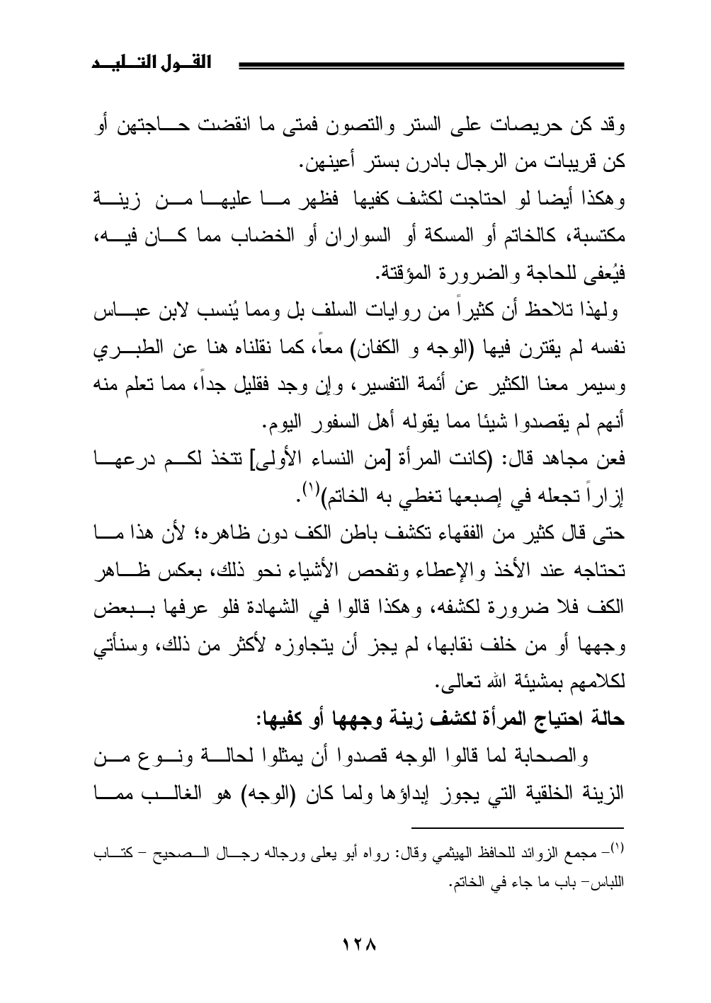 ولهذا تلاحظ أن كثيراً من روايات السلف بل ومما يُنسب لابن عباس نفسه لم يقترن فيها (الوجه والكفان) معاً، كما نقلناه هنا عن الطبري وسيمر معنا الكثير عن أئمة التفسير، وإن وجد فقليل جداً، مما تعلم منه أنهم لم يقصدوا شيئا مما يقوله أهل السفور اليوم.
