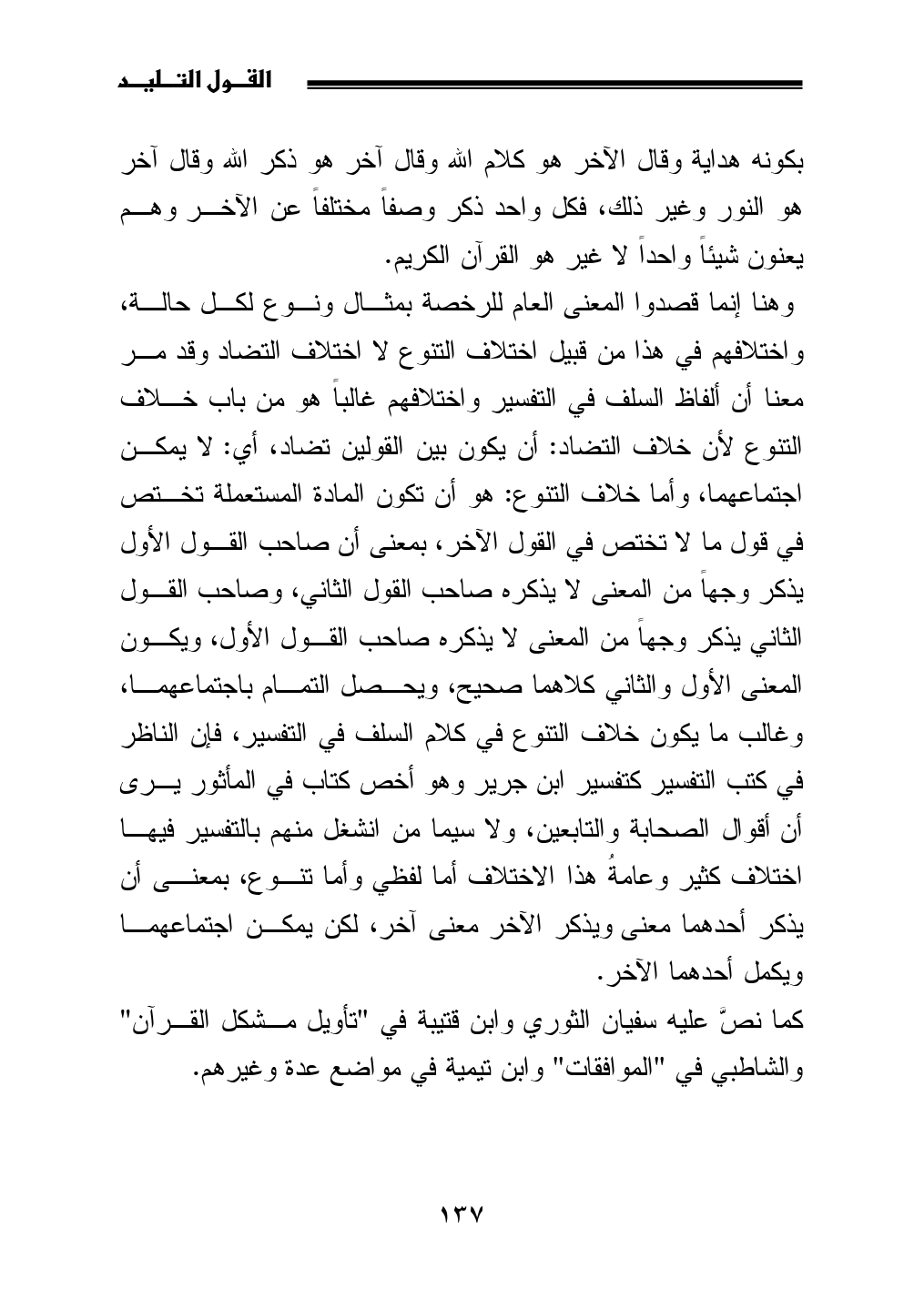 كما نصَّ عليه سفيان الثوري وابن قتيبة في "تأويل مشكل القرآن" والشاطبي في "الموافقات" وابن تيمية في مواضع عدة وغيرهم.