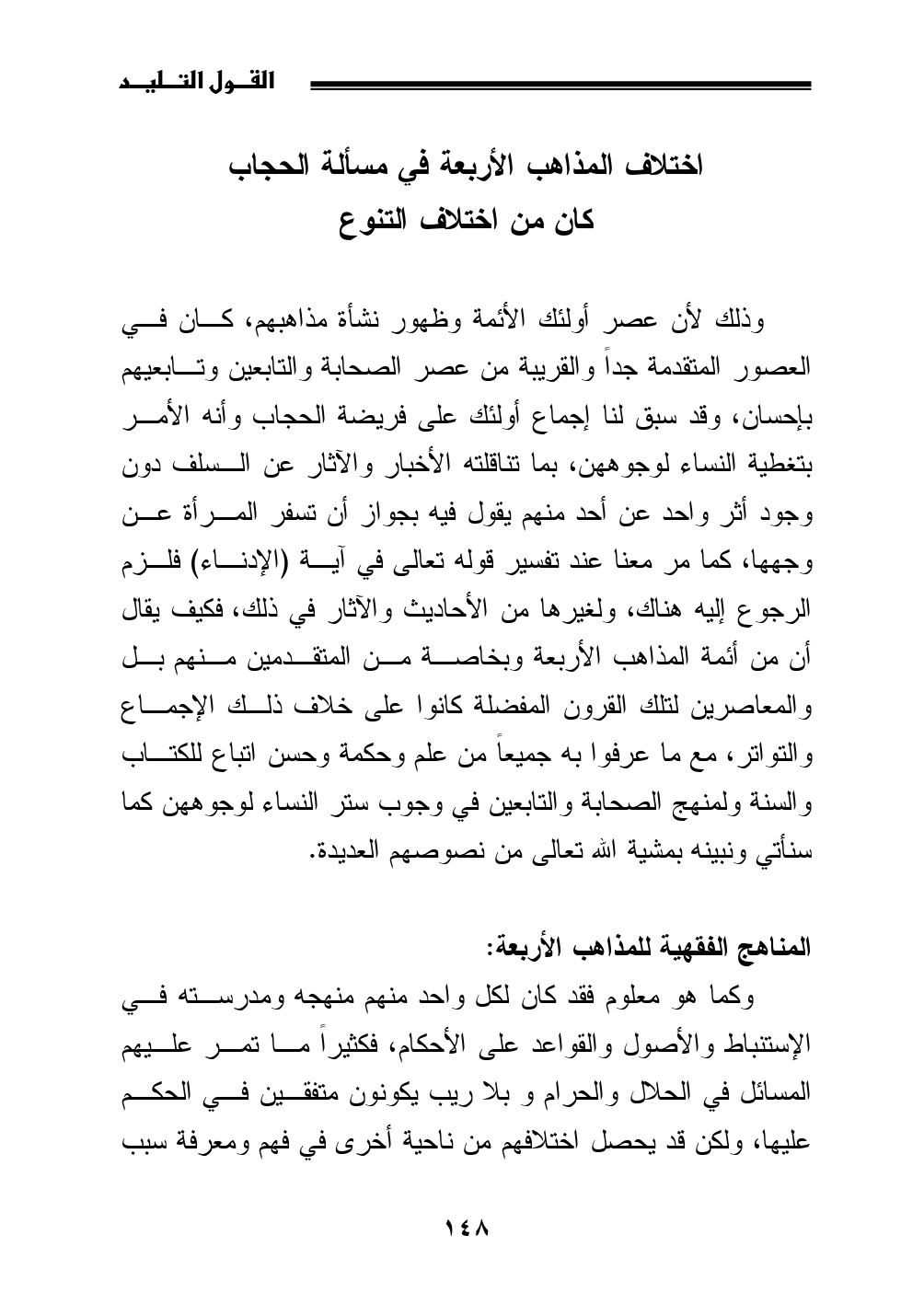 اختلاف المذاهب الأربعة في مسألة الحجاب كان من اختلاف التنوع