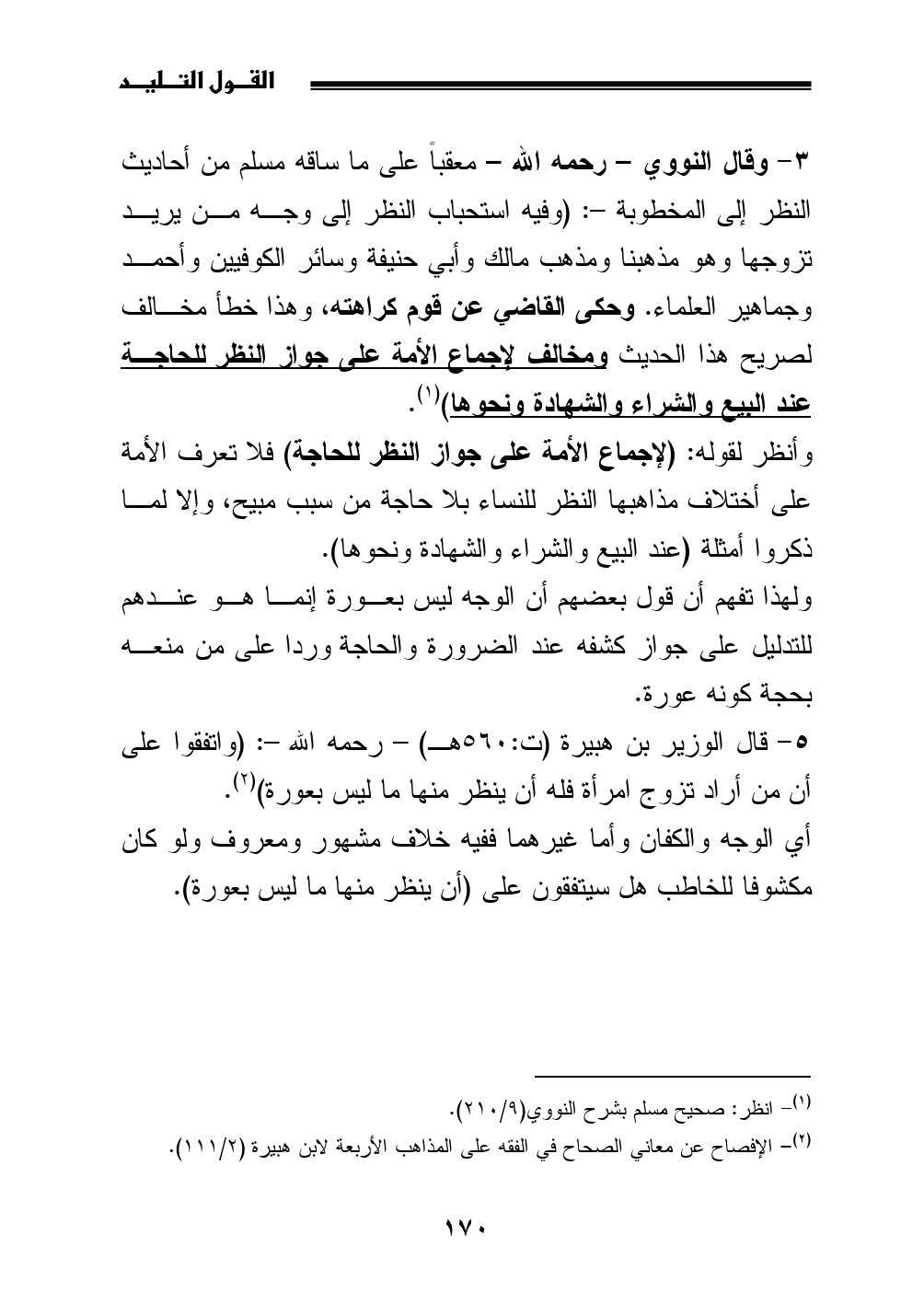 (¬2) الإفصاح عن معاني الصحاح في الفقه على المذاهب الأربعة لابن هبيرة (2/ 111).