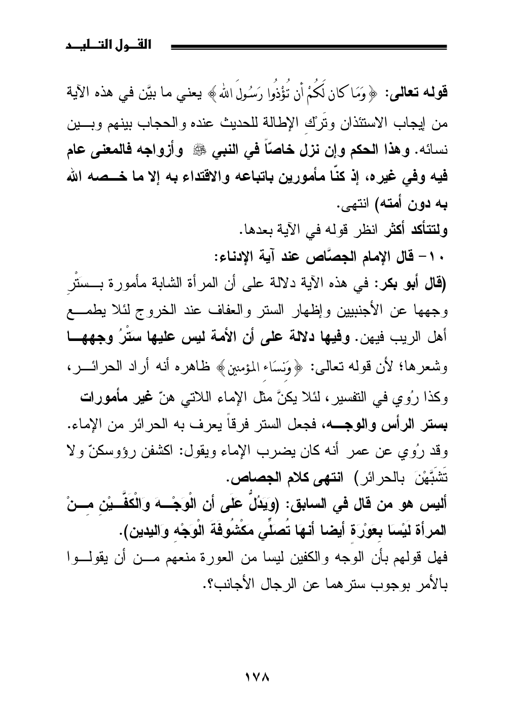 10 - قال الإمام الجصَّاص عند آية الإدناء: