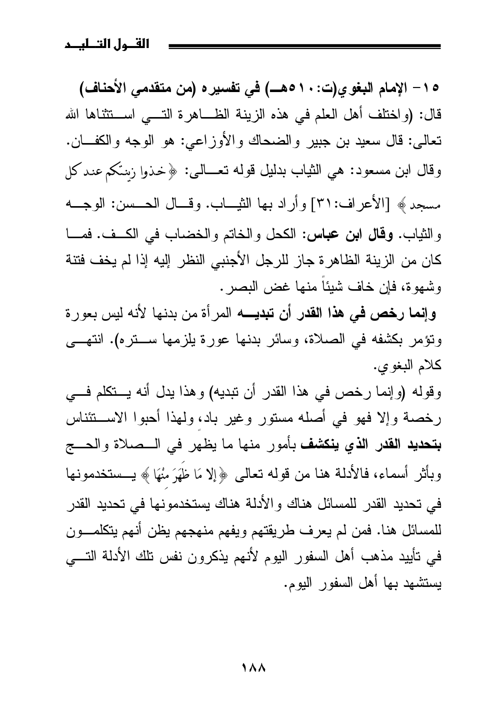 15 - الإمام البغوي (ت: 510 هـ) في تفسيره (من متقدمي الأحناف)