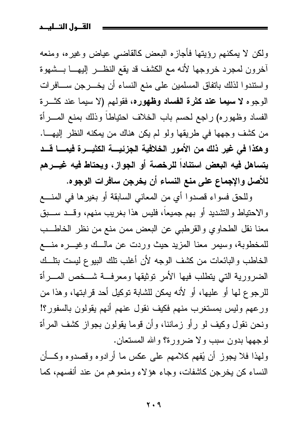 ولهذا فلا يجوز أن يُفهم كلامهم على عكس ما أرادوه وقصدوه وكأن النساء كن يخرجن كاشفات، وجاء هؤلاء ومنعوهم من عند أنفسهم، كما