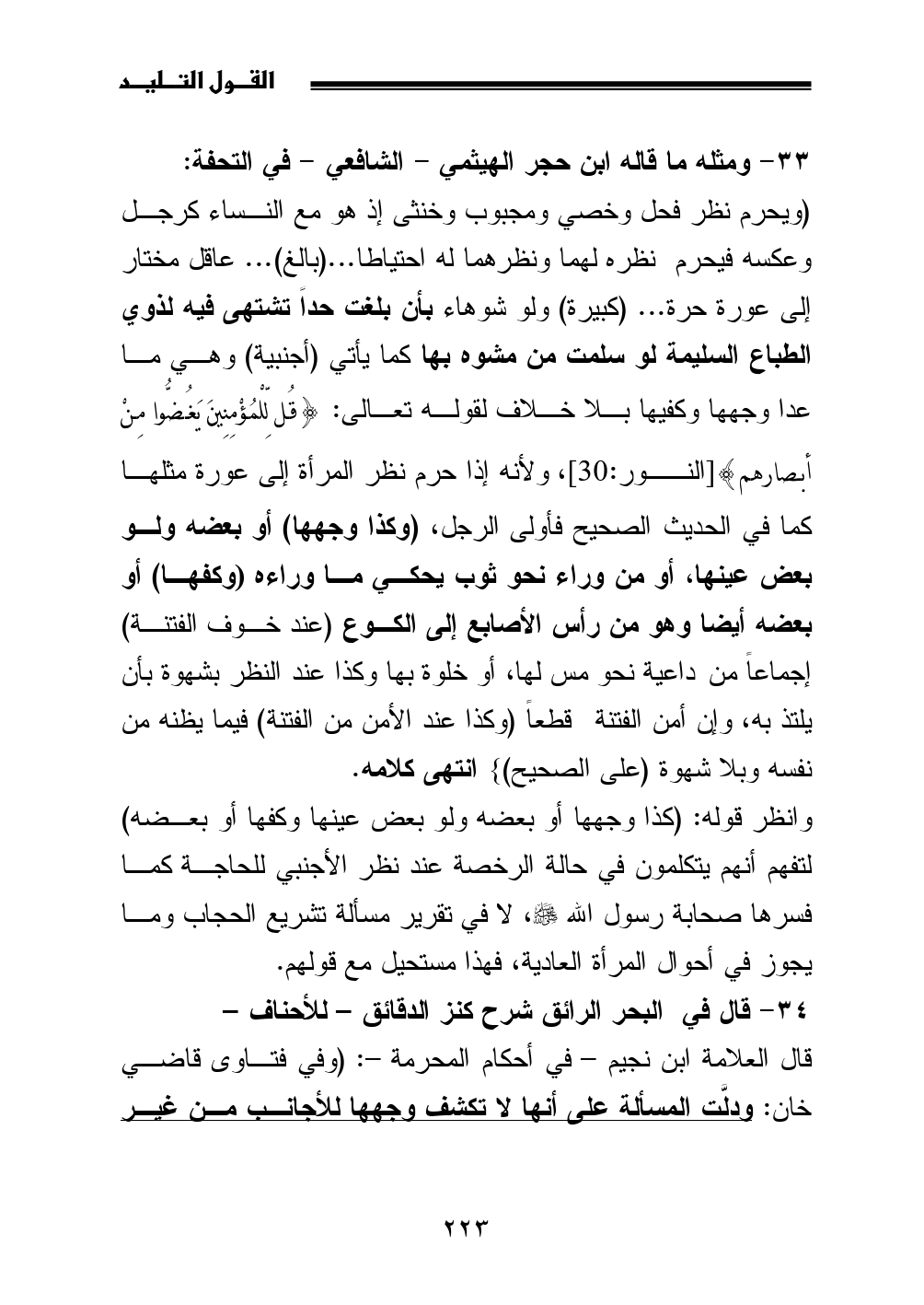 33 - ومثله ما قاله ابن حجر الهيثمي - الشافعي - في التحفة: