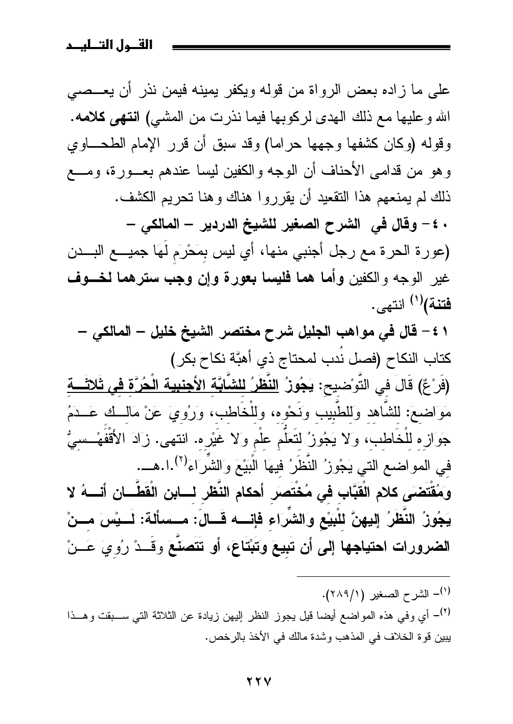 40 - وقال في الشرح الصغير للشيخ الدردير - المالكي -