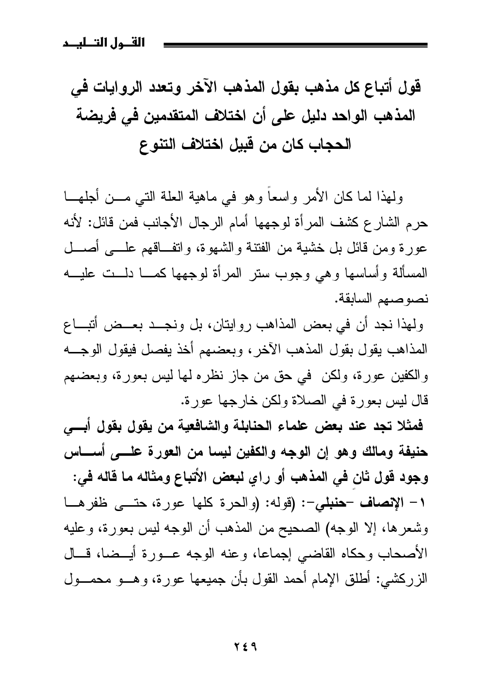 قول أتباع كل مذهب بقول المذهب الآخر وتعدد الروايات في المذهب الواحد دليل على أن اختلاف المتقدمين في فريضة الحجاب كان من قبيل اختلاف التنوع
