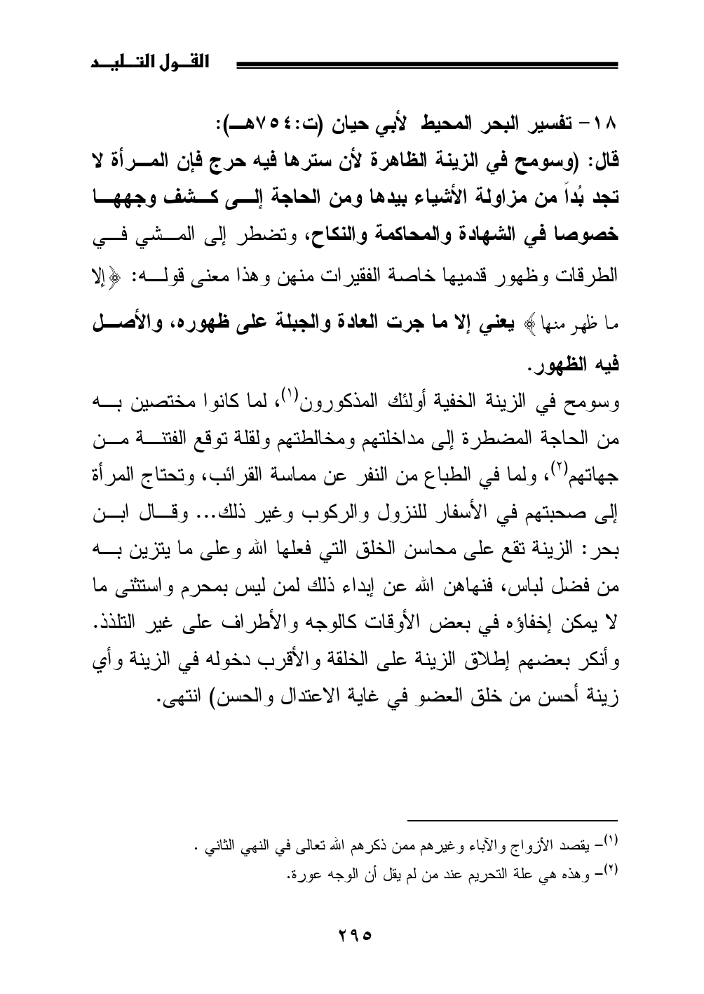 (¬1) يقصد الأزواج والآباء وغيرهم ممن ذكرهم الله تعالى في النهي الثاني.