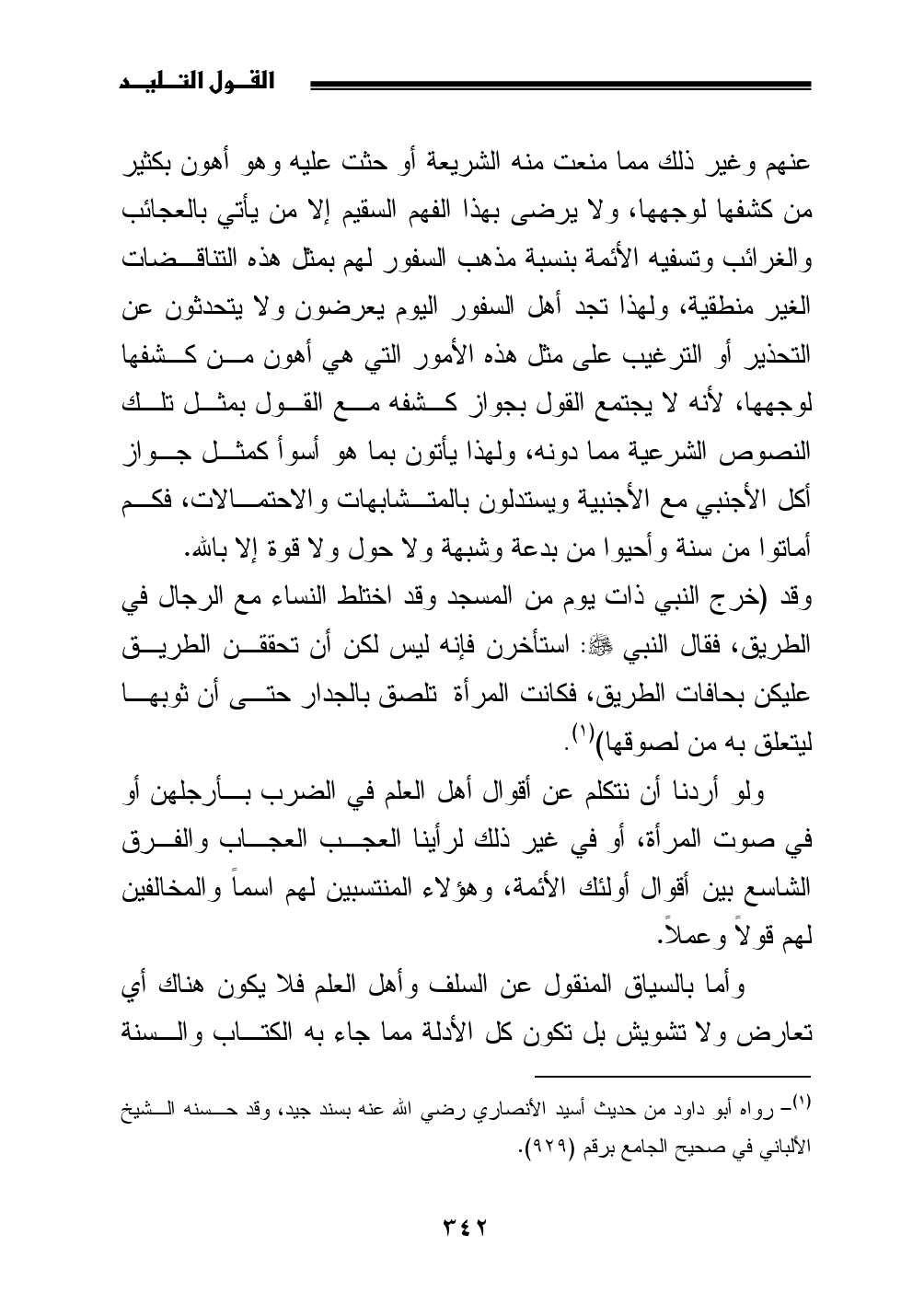 (¬1) رواه أبو داود من حديث أسيد الأنصاري رضي الله عنه بسند جيد، وقد حسنه الشيخ الألباني في صحيح الجامع برقم (929).