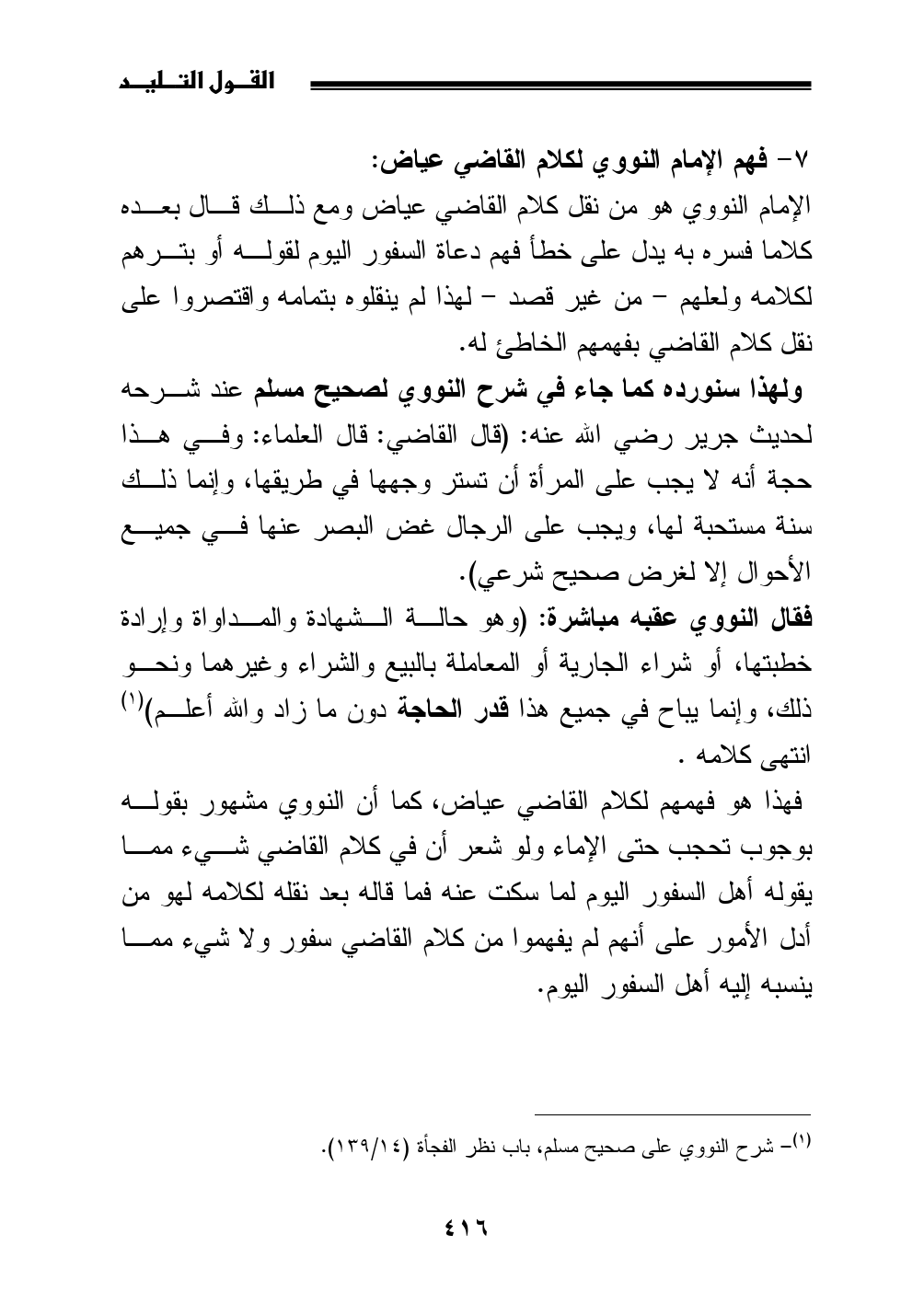 7 - فهم الإمام النووي لكلام القاضي عياض: