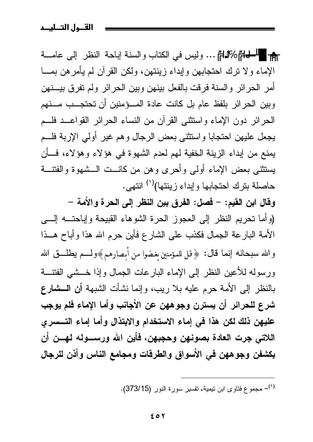 (¬1) مجموع فتاوى ابن تيمية، تفسير سورة النور (373/ 15).