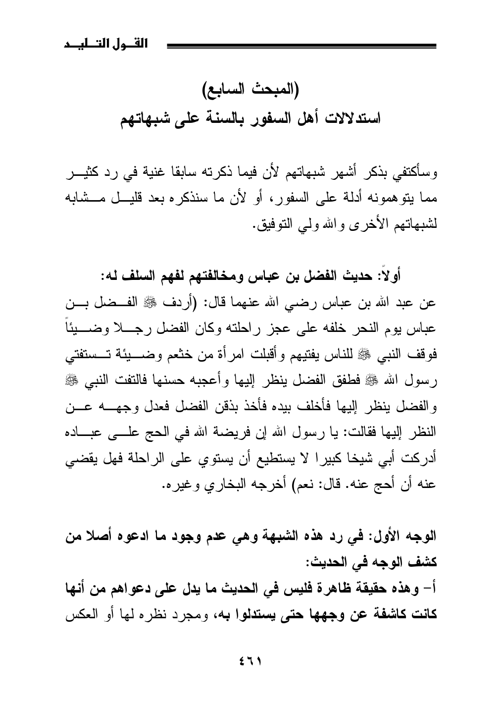 أولاً: حديث الفضل بن عباس ومخالفتهم لفهم السلف له: