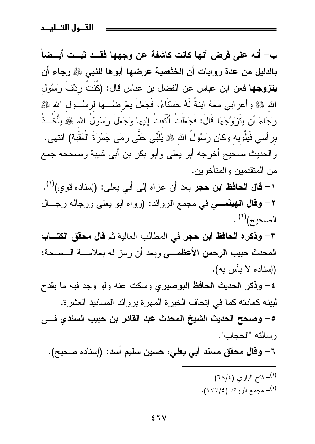 5 - وصحح الحديث الشيخ المحدث عبد القادر بن حبيب السندي في رسالته "الحجاب".