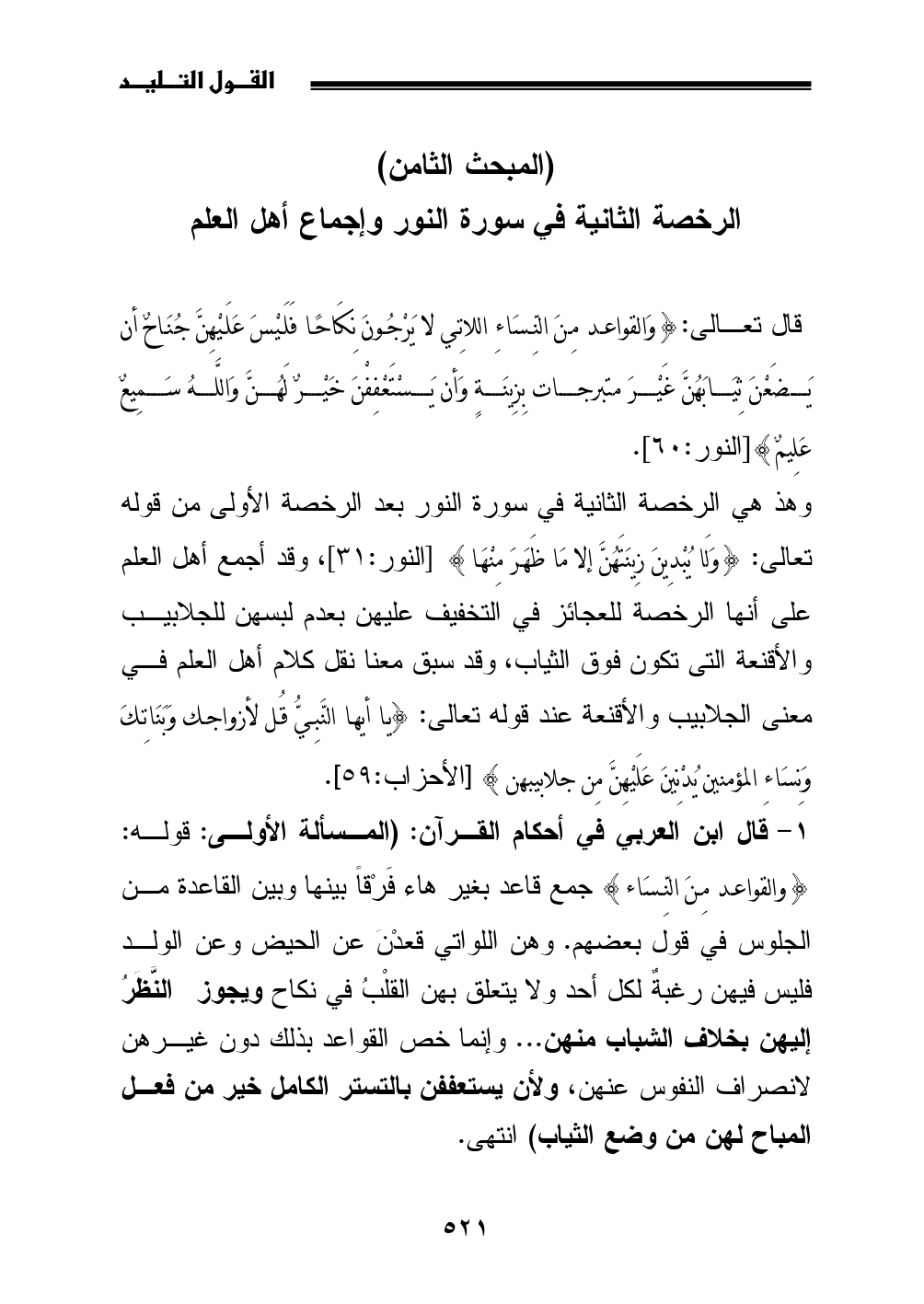 الرخصة الثانية في سورة النور وإجماع أهل العلم